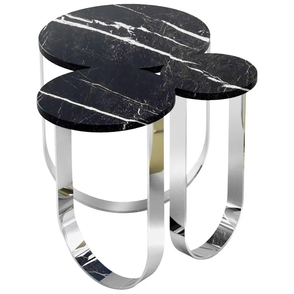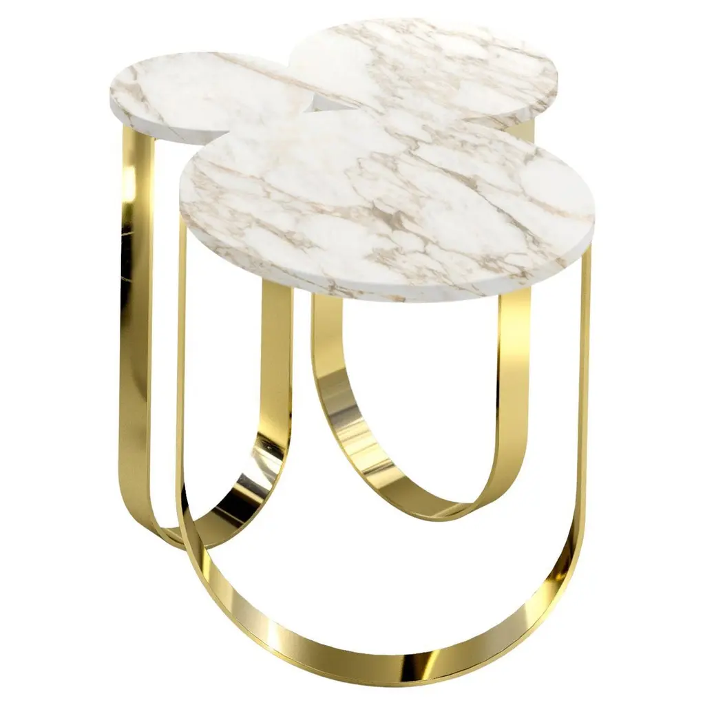 The threefold metal-bodied, marble center table of Kontra. Center Table, Coffee Table."Elevate Your Living Space with the Flank Table Modern Art Deco Center Table Coffee TableMake a bold statement in your living room with the Flank Table Modern Art Deco Center Table Coffee Table. This exquisite piece of furniture combines modern elegance, Art Deco influences, and superior craftsmanship, adding a touch of glamour to any interior.Designed with meticulous attention to detail, this center table features a unique geometric base with clean lines and a sleek metal finish. The Art Deco-inspired design exudes sophistication and timeless beauty, making it a stunning focal point in your living space.The Flank Table not only serves as a functional coffee table but also doubles as a work of art. Its spacious tabletop provides ample surface area for placing drinks, books, or decorative items, while the geometric base adds visual interest and structural integrity.Crafted with high-quality materials, this coffee table ensures durability and longevity. The sturdy construction and premium finishes guarantee a long-lasting piece that withstands daily use and retains its elegance over time.Whether you have a modern, contemporary, or eclectic interior, the Flank Table seamlessly blends with various decor styles, making it a versatile choice for any home. It creates a luxurious and inviting atmosphere, elevating the overall aesthetics of your living space.Invest in the Flank Table Modern Art Deco Center Table Coffee Table and transform your living room into a haven of style and sophistication. Experience the perfect fusion of modern design and timeless elegance, and create a space that reflects your refined taste and personality.Make a statement with the Flank Table Modern Art Deco Center Table Coffee Table and indulge in the luxury of a truly captivating centerpiece."
