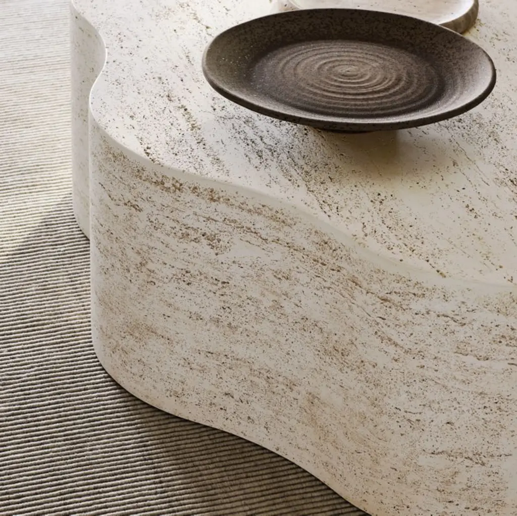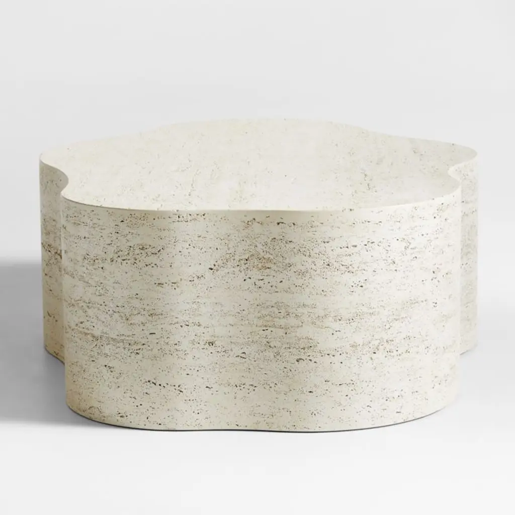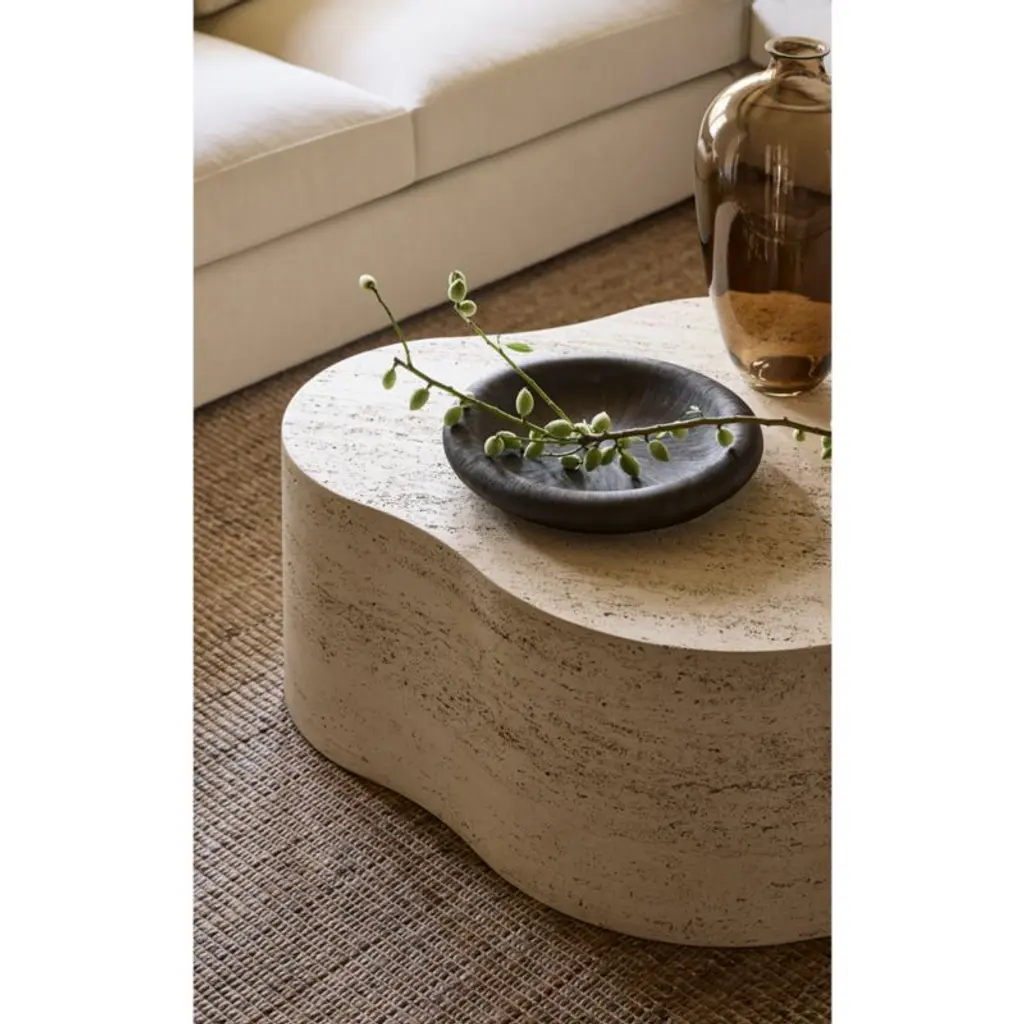 Organic curves rendered in stone-like resin lend warmth and vitality to our modern coffee table. Each one-of-a-kind resin table emulates the look of natural travertine, displaying its own unique color variations, veining and porous texture. We love how Fleur's curvaceous contours make the most of the faux-stone texture.