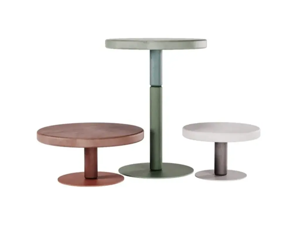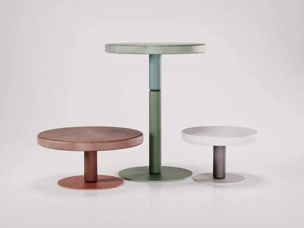 Flipper Coffee Tables are part of the Flipper Collection designed by Marialaura Irvine. Game, color and freedom are the keywords of this new collection based on the principle "by doing less, is doing more".Three different round table tops, a modular leg and a matching metal plate make up the perfect table for any space.A few ad hoc designed elements allow you to create infinite combinations that give life to bookcases, tables and coffee tables that are perfect for any environment.Three cylindrical concrete modules with different heights and rounded edges are the supporting structure of ever-changing furnishing accessories. The internal metal system allows the modules to be held together, guaranteeing stability even for the bravest combinations. The tops designed with elementary geometric shapes reinforce the concept of game and essentiality, offering the possibility of creating accessories suitable for any public or private environment, offering flexibility and customization but guaranteeing aesthetic coherence and recognisability.Flipper is more than a modular system. Flipper is free interpretation, it's creativity.