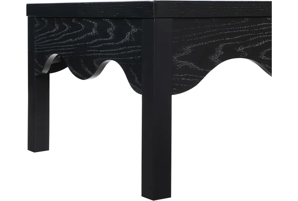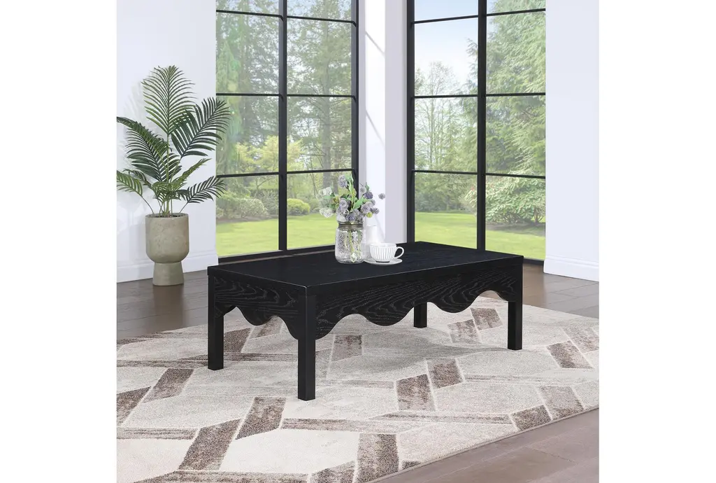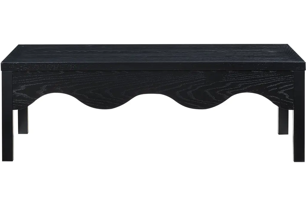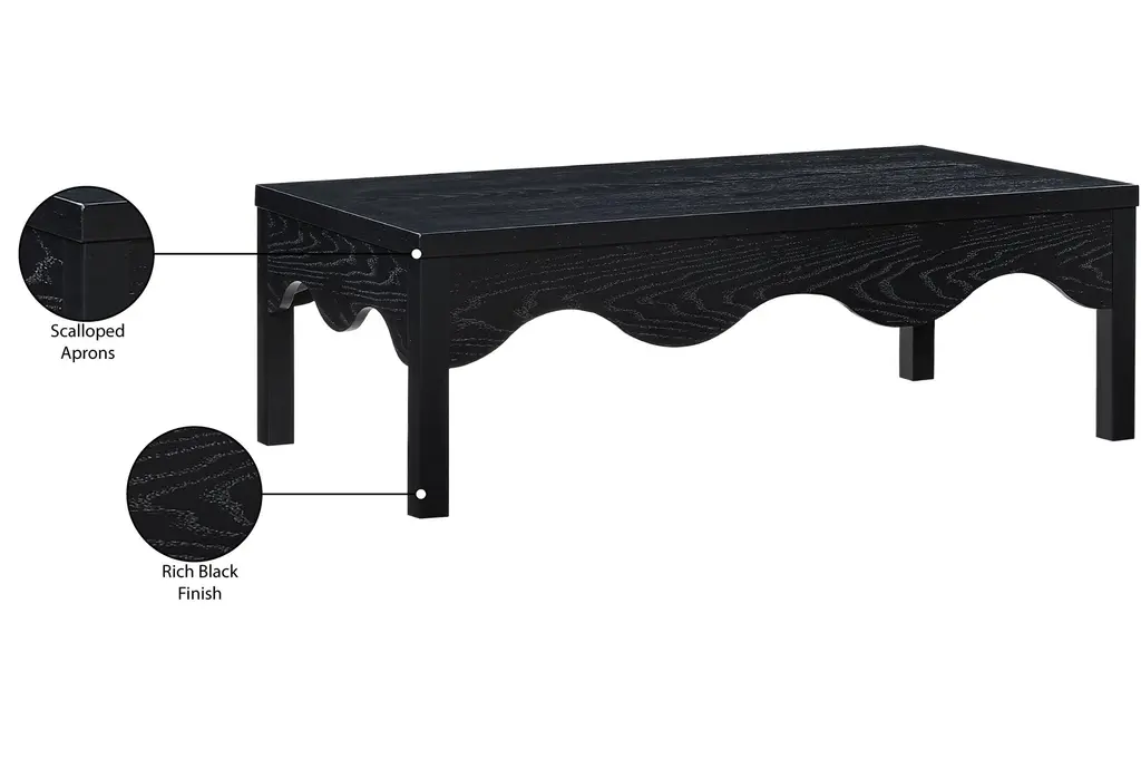 Flora Modern Black 48" Scalloped Curve Coffee Table | Rectangle