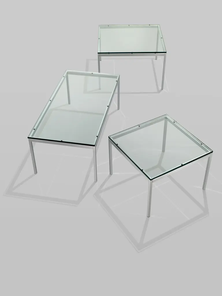 The Florence Knoll Coffee Table, designed to furnish the new interiors of postwar America, is a scaled-down translation of the lines, gestures and materials of modern architecture. Consistent with all of her designs, the table has a spare, geometric presence that reflects the rational design approach Florence Knoll learned from Mies van der Rohe.