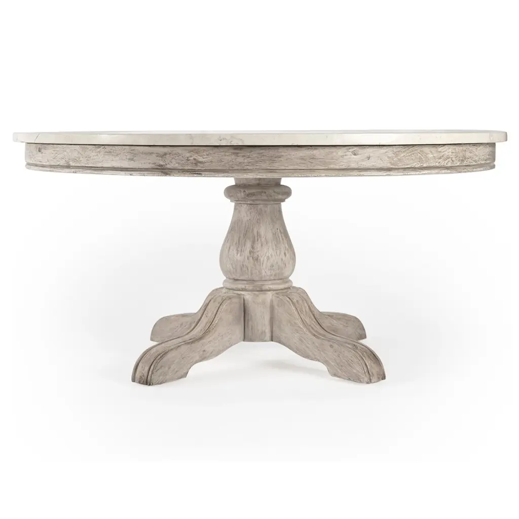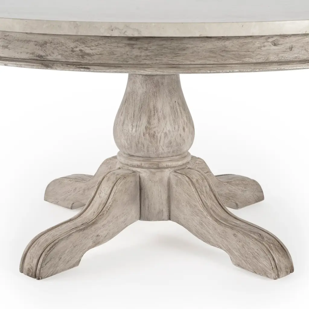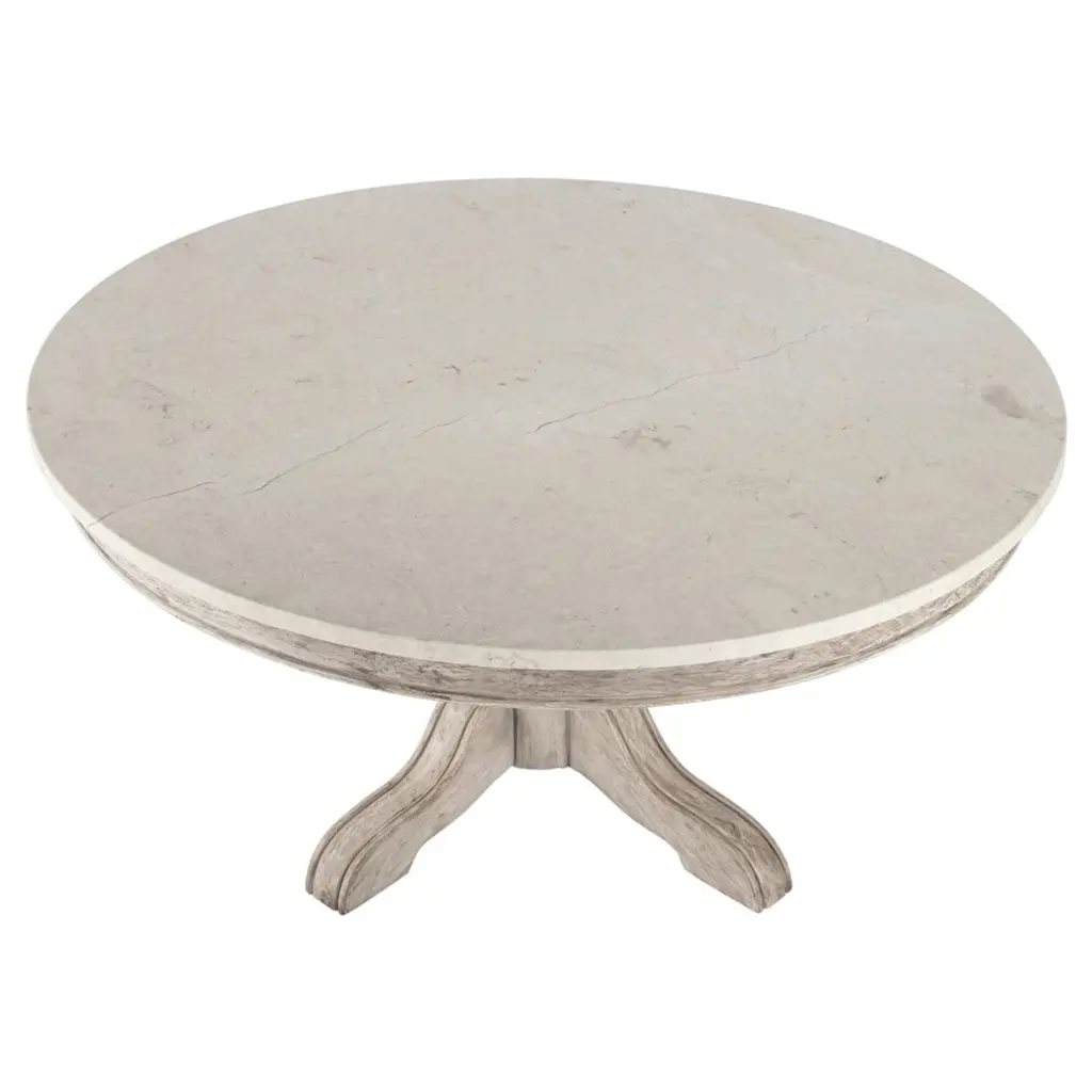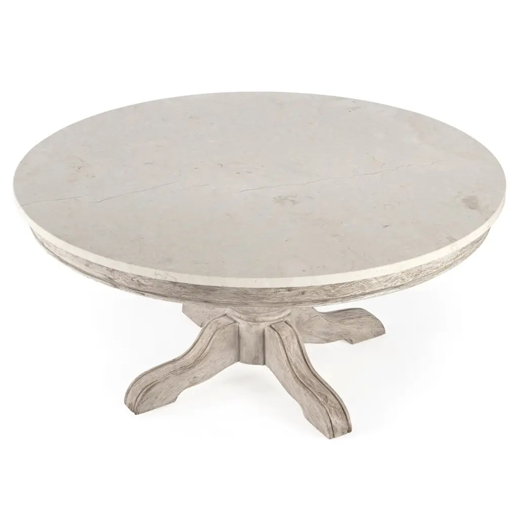 Florentine French Country Cream Marble Grey Wood Round Coffee Table