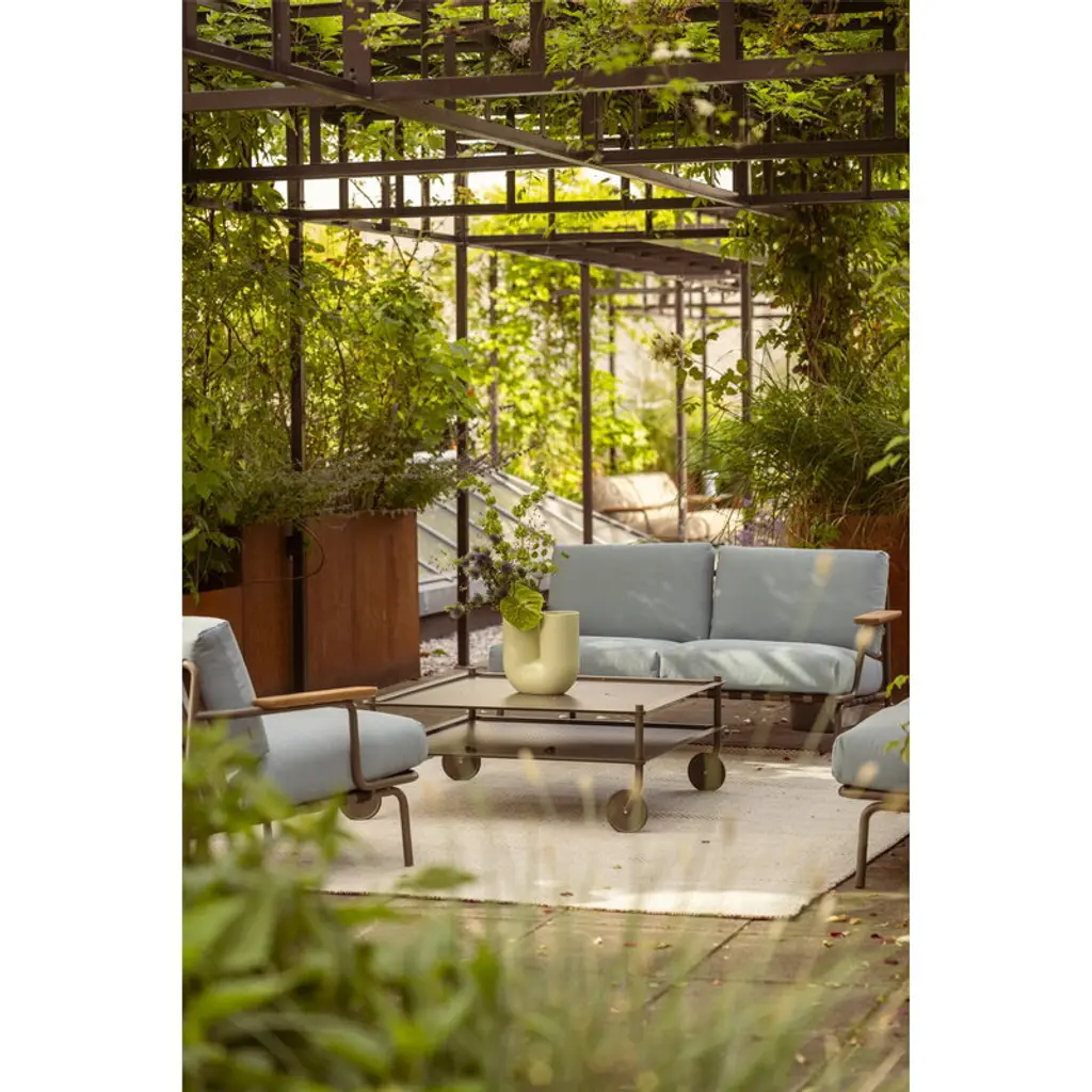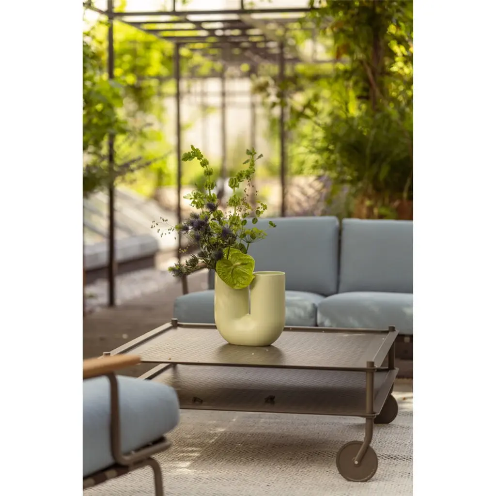 Muuto's Flow coffee table combines a minimalist design with durable construction, making it a versatile addition to any setting from home living room and bedroom to offices or public spaces. Designed by Normal Studio, the sleek, table is mounted on wheels, allowing it to be easily moved from one space to another as needed. Made from powder-coated steel, the Flow table is also designed to withstand outdoor conditions, making it both practical and adaptable across various environments.
