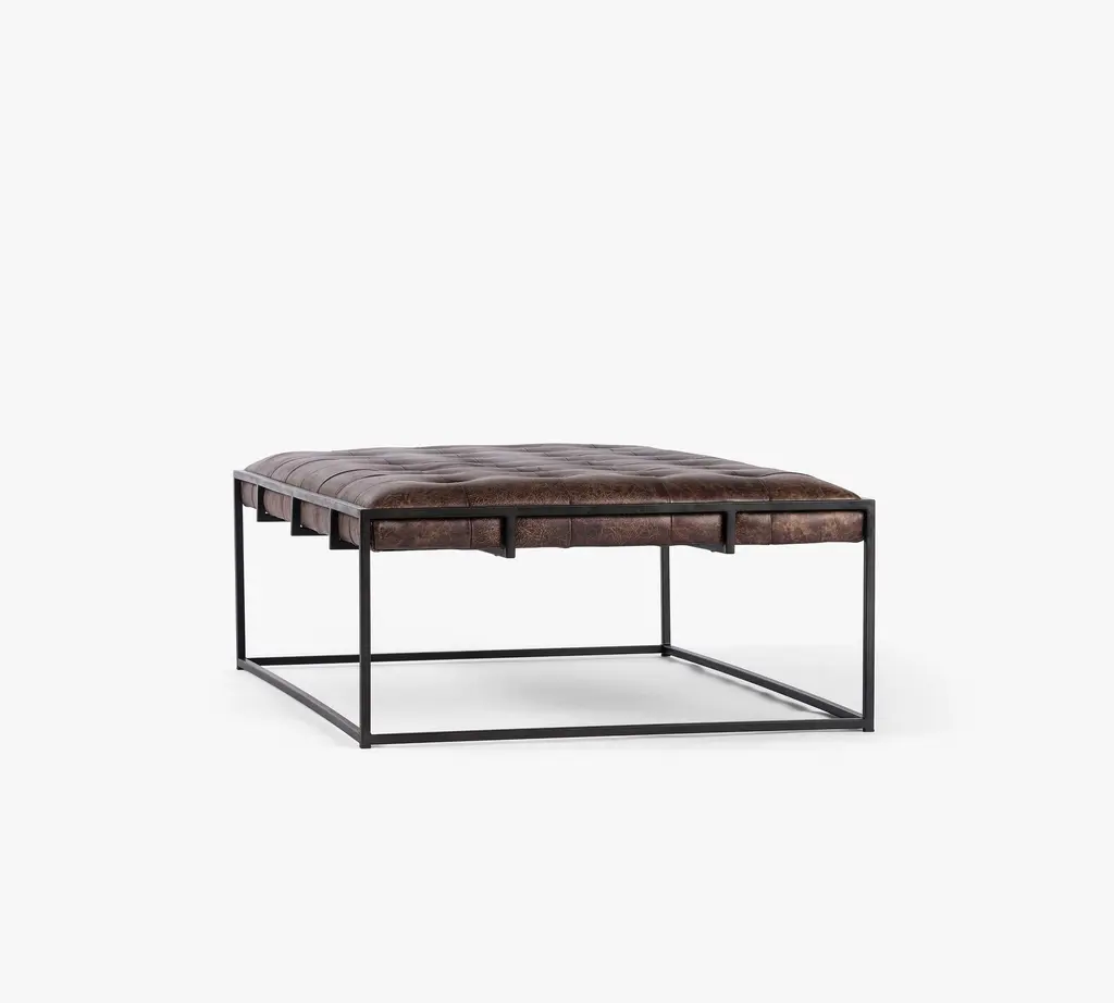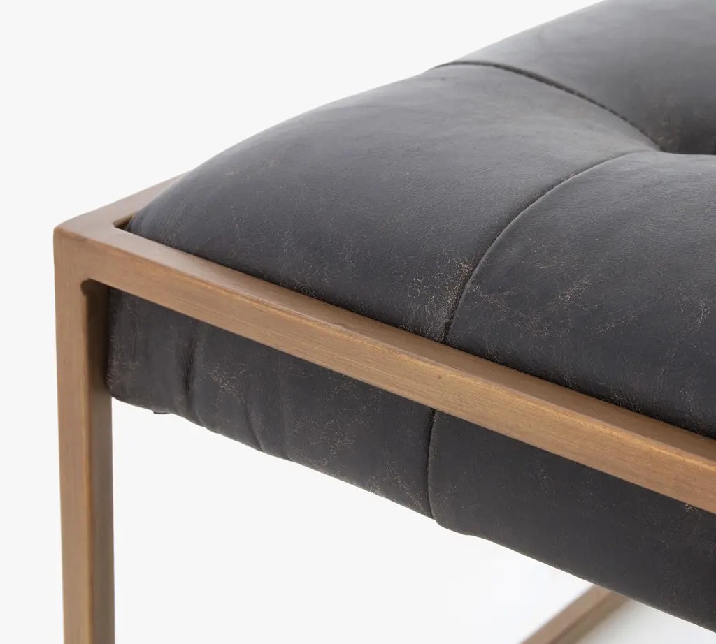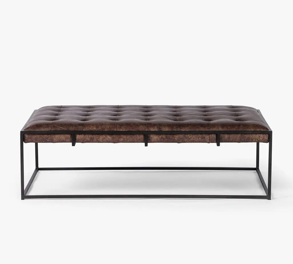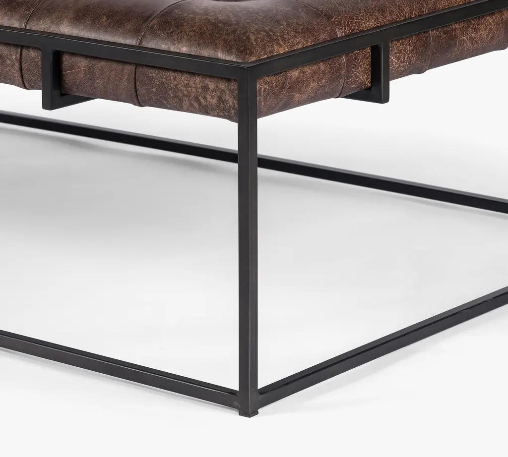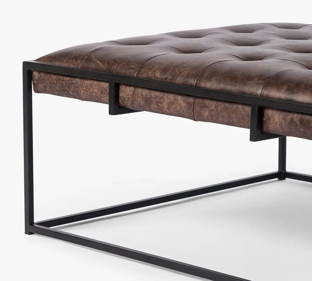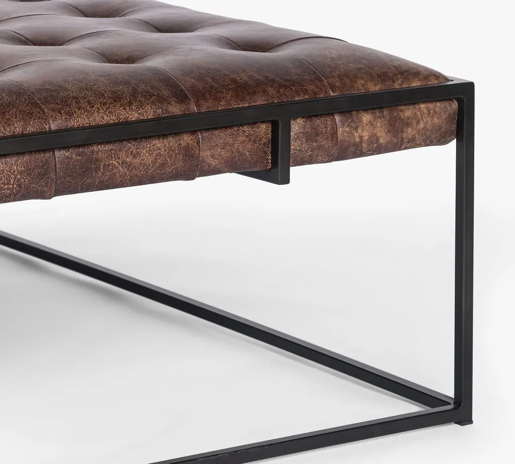 Old-world luxury meets contemporary charm. Blind-tufted, top-grain leather sits on a slim metal frame. The leather has a distinctive, worn look that highlights rather than hides its natural markings. Refined and classic, yet innovative and modern, this elegant statement piece can transform a room.