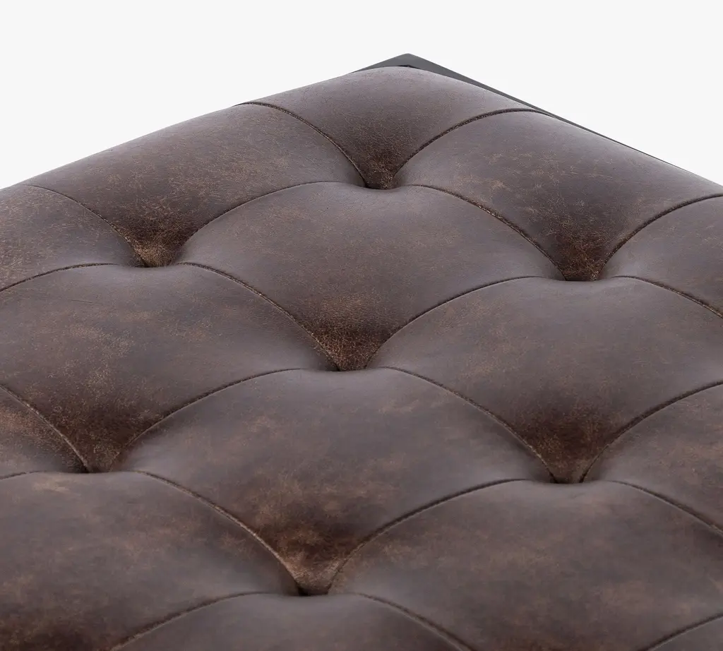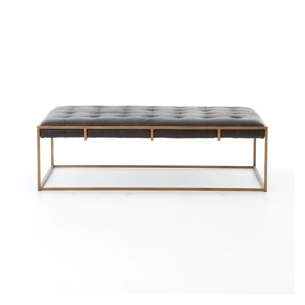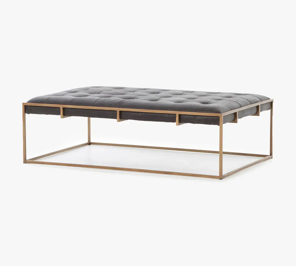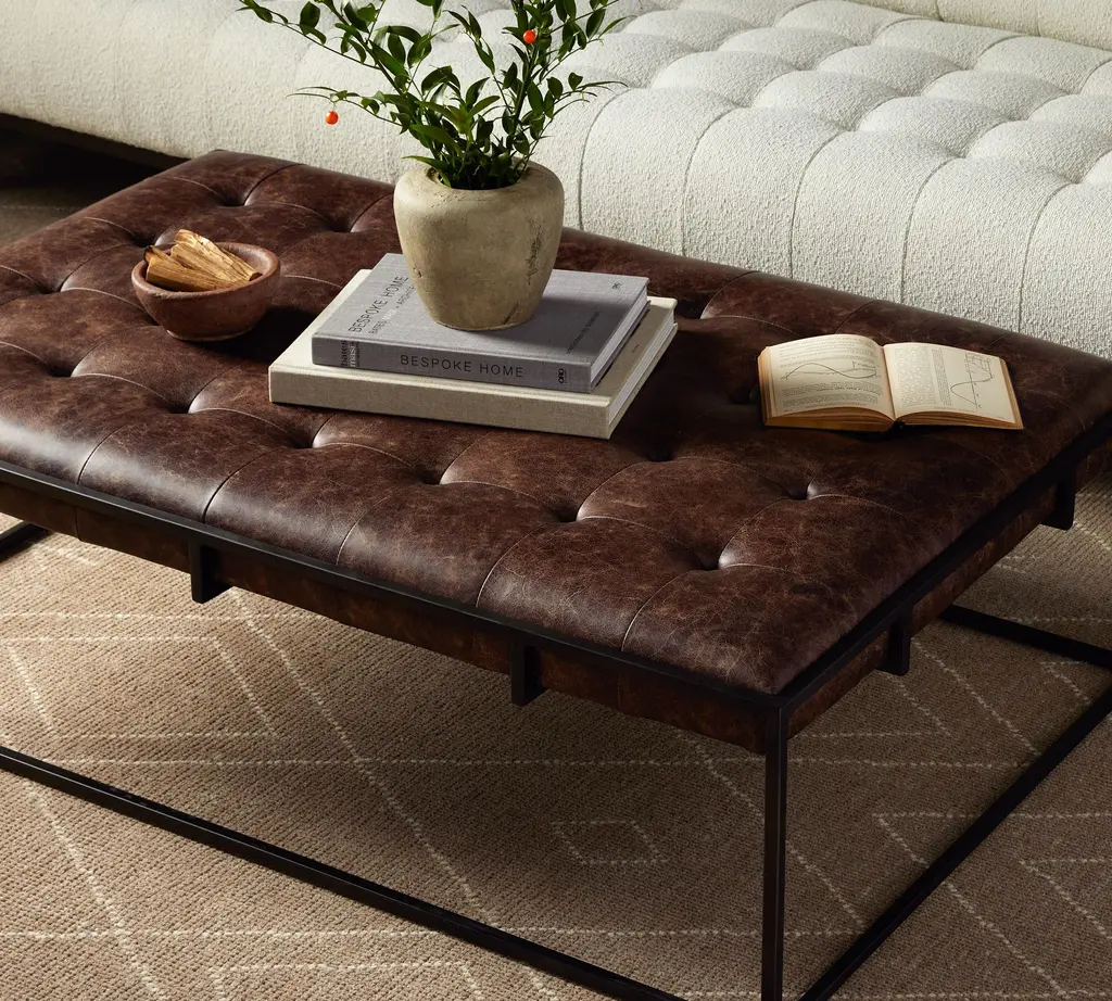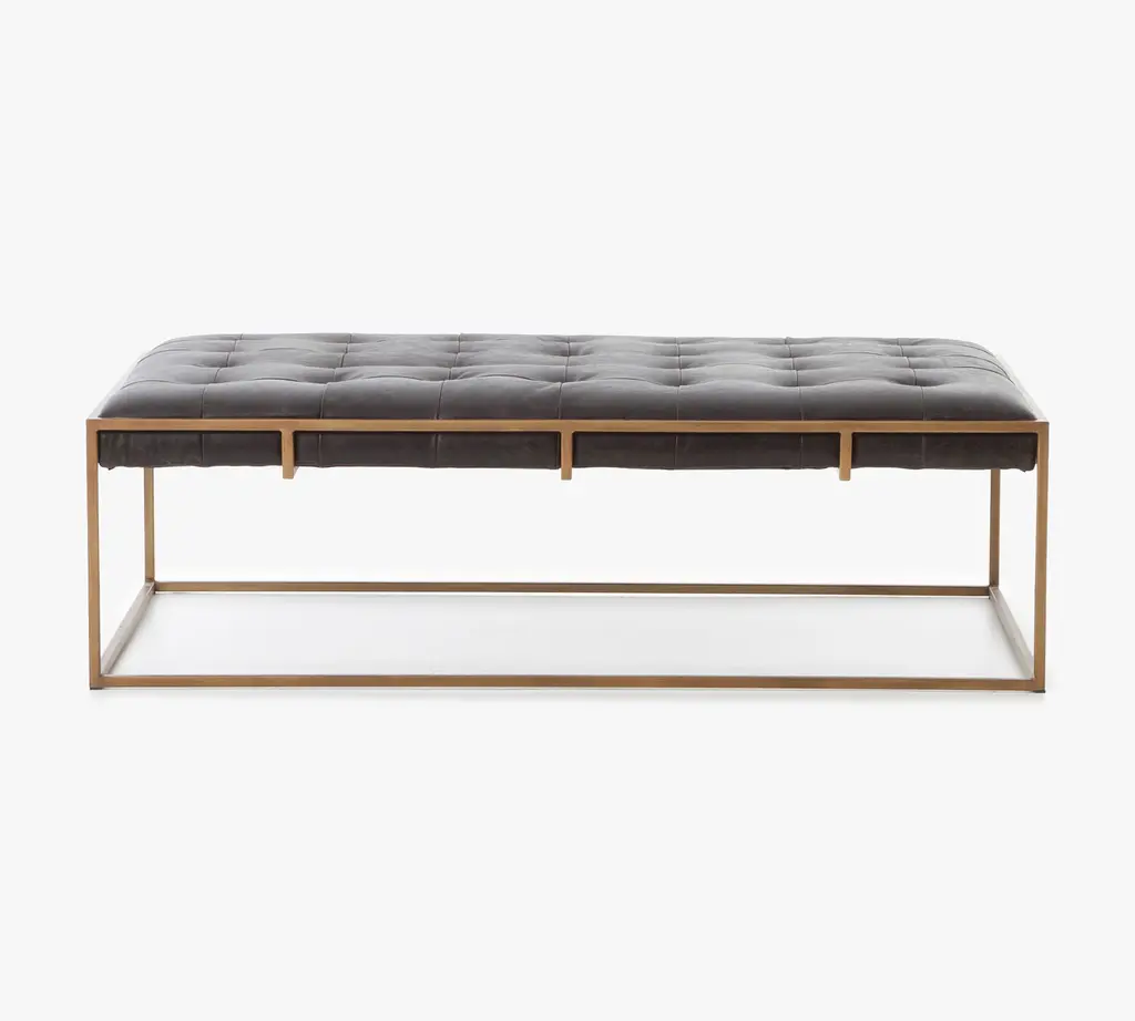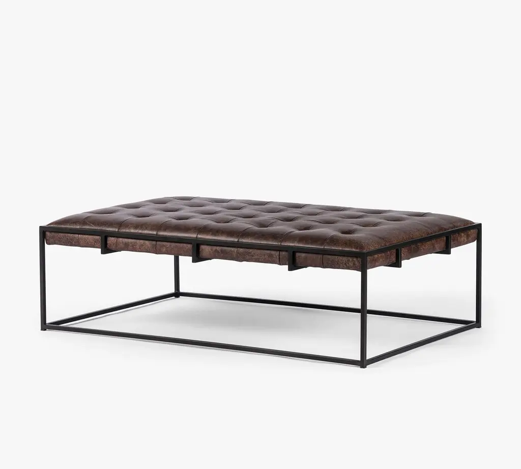Old-world luxury meets contemporary charm. Blind-tufted, top-grain leather sits on a slim metal frame. The leather has a distinctive, worn look that highlights rather than hides its natural markings. Refined and classic, yet innovative and modern, this elegant statement piece can transform a room.