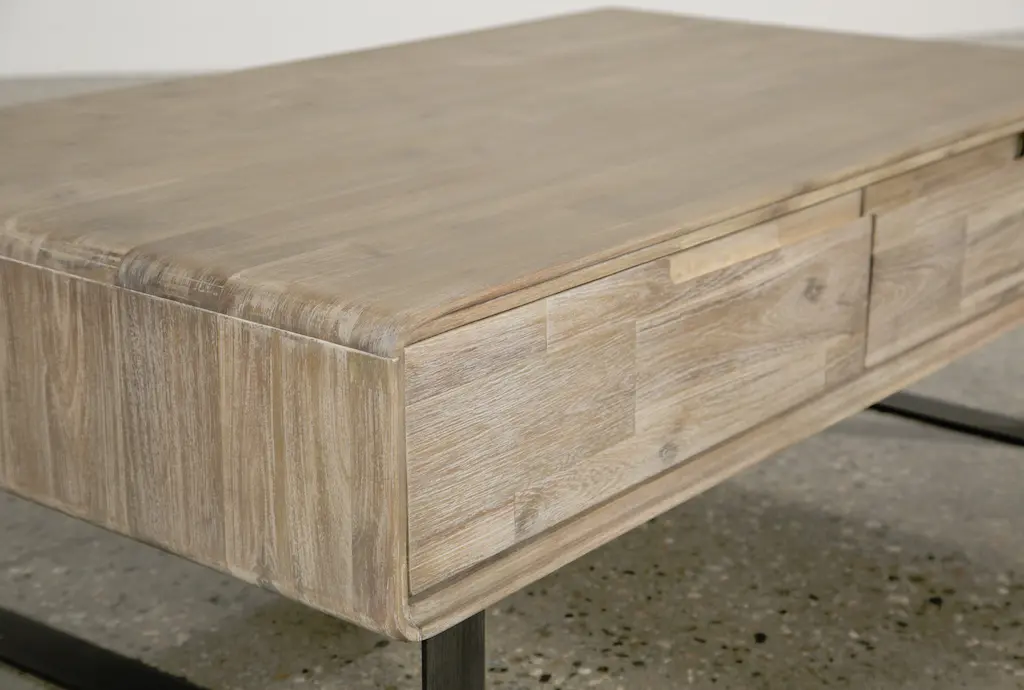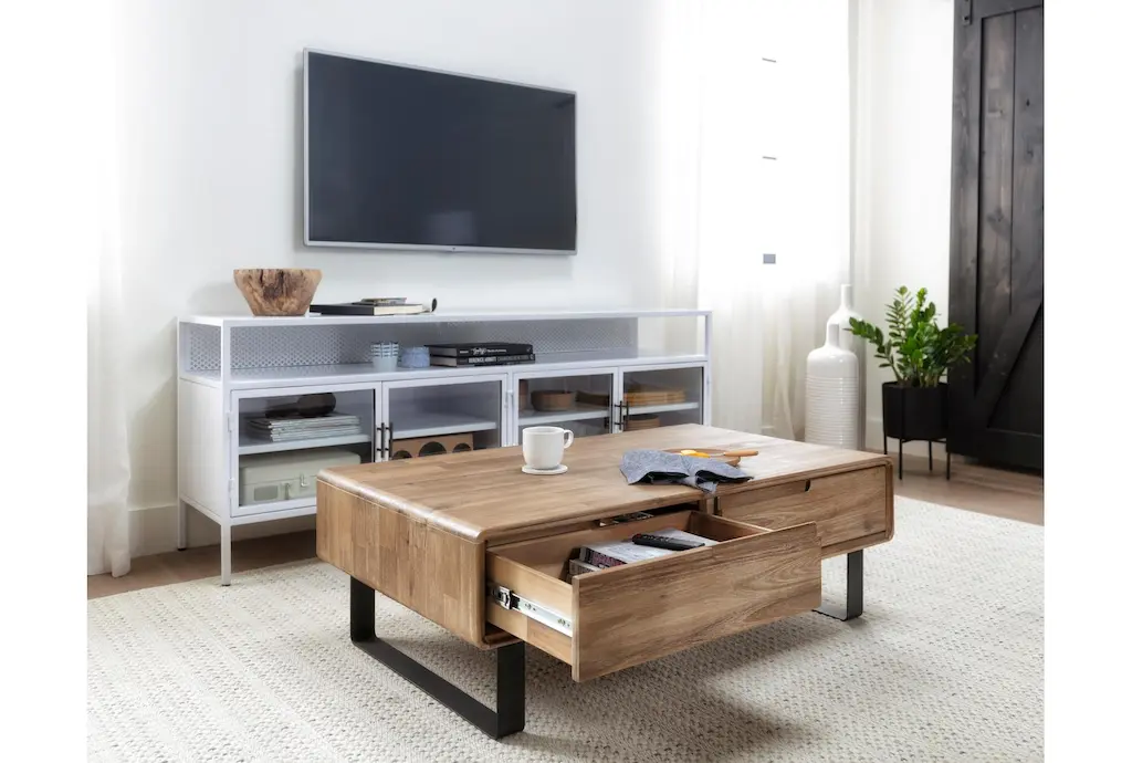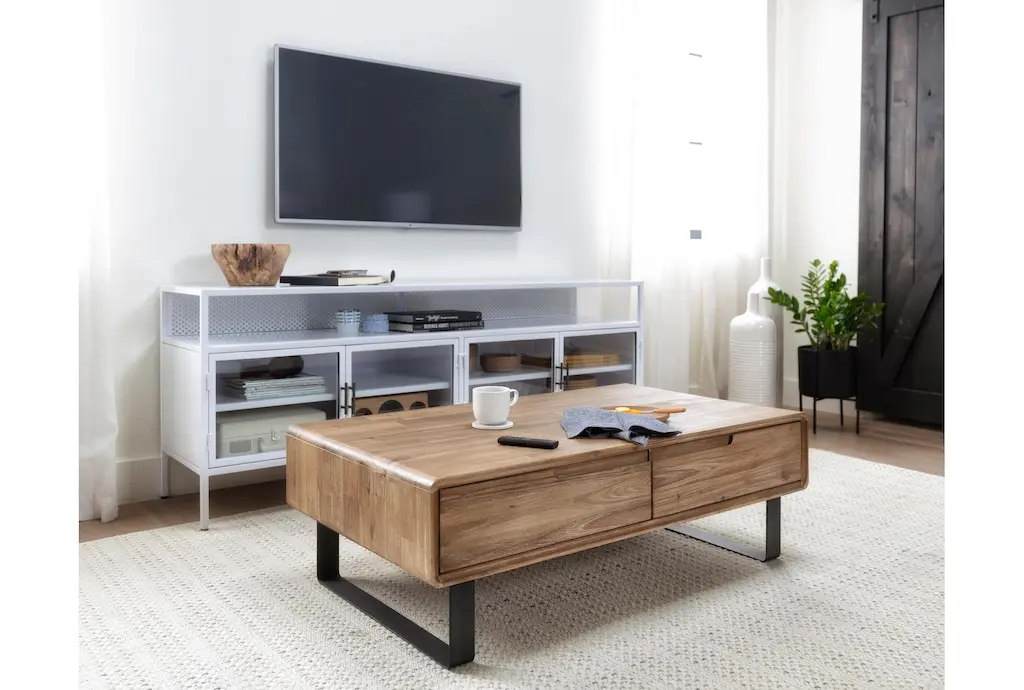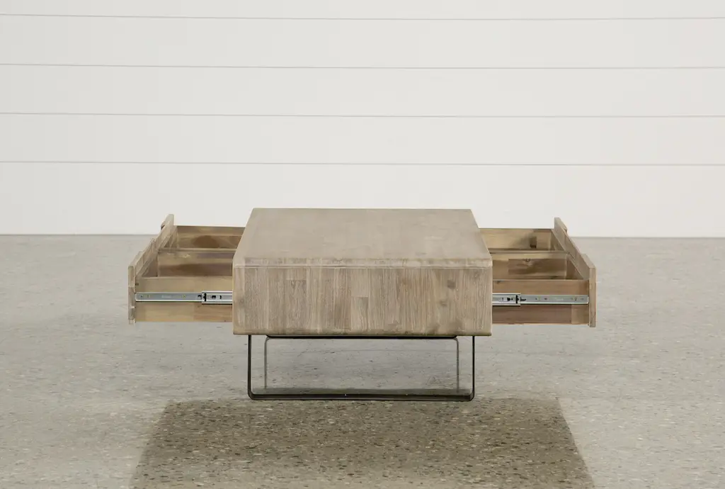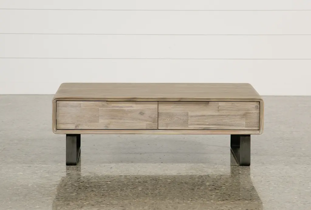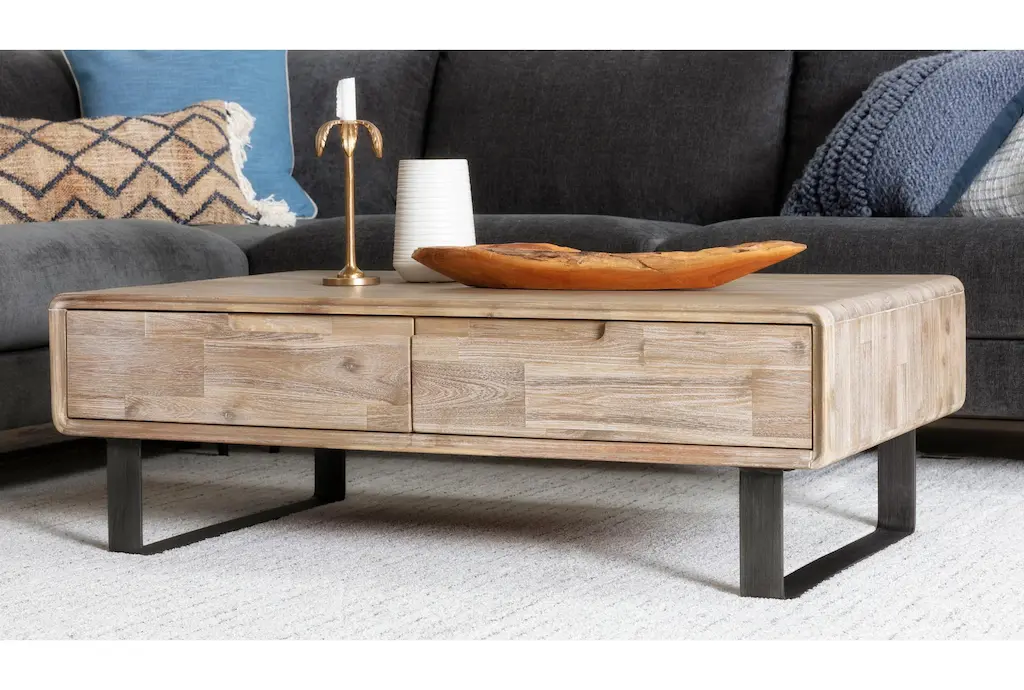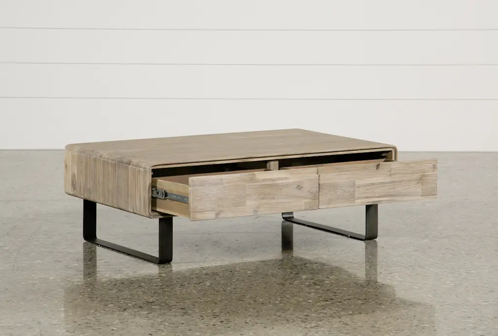 Forma Natural 47" Wide Rectangle Wood Top & Metal Base Coffee Table | Storage | Drawers | Acacia