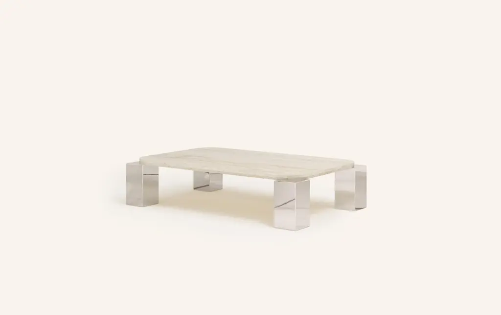Form(la) Cubo Rectangle Coffee Table 62”l X 38”w X 14”h Travertino & Chrome