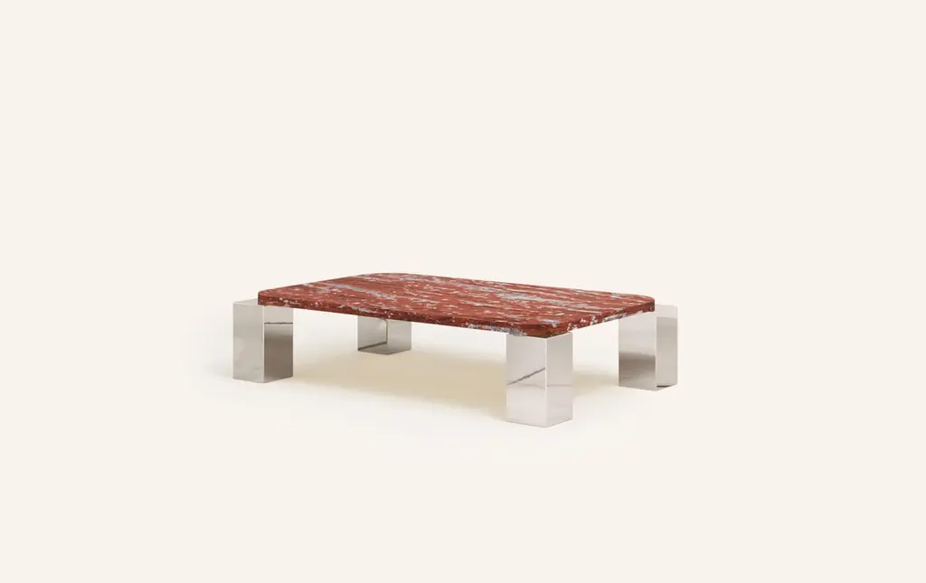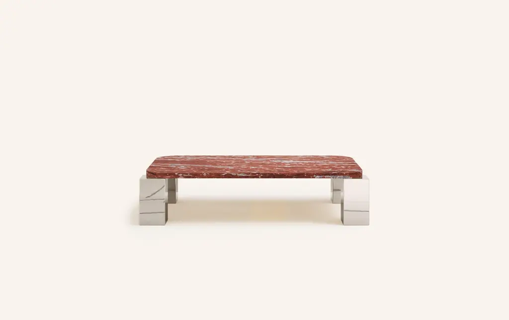 Form(la) Cubo Rectangle Coffee Table 74”l X 44”w X 14”h Francia Marble & Chrome