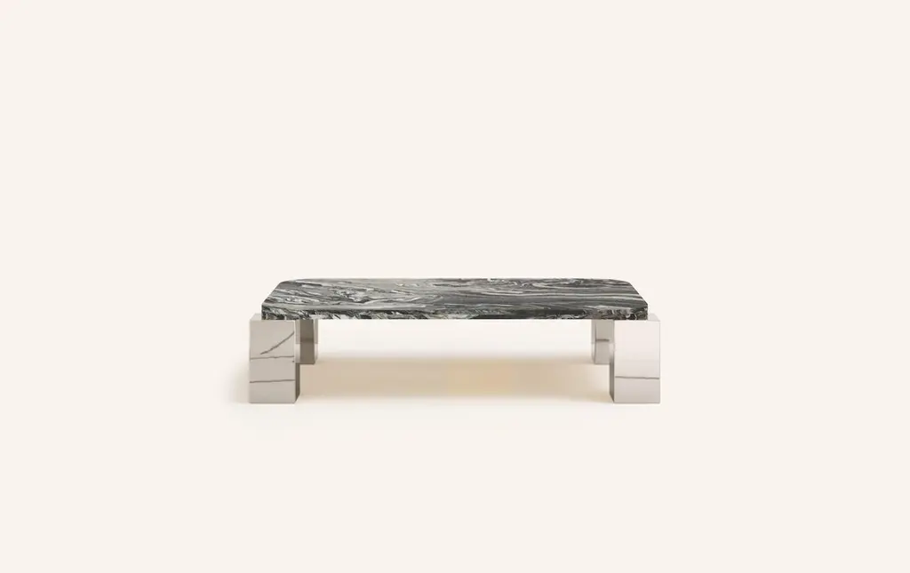 MONOLITHIC FORMS SOFTENED BY GENTLE EDGES. WITH ITS BOLD MARBLE PATTERNS CUBO IS AS VERSATILE AS IT IS STRIKING.DIMENSIONS:74”L x 44”W x 14”H: - 72”L x 42”W x 1.5” THICK TABLETOP WITH WITH 6" RADIUS CORNERS - 7”L x 7”W LEGS- TOP 1" OFFSET FROM LEGS - 2” CUTOUT(S) ON UNDERSIDE OF TABLE TOPCONSTRUCTION:TABLE TOP: - 3/4”x 2 SLABS WITH EASED EDGE- HOLE(S) IN TABLE TOP INTERLOCKS WITH BASE OF TABLEBASE:- HOLLOW CONSTRUCTION USING 3/4” STONE SLAB OR 304 STAINLESS STEEL- FELT LINING TO BOTTOM OF BASE FOR FLOOR PROTECTION- STONE FINISH TO TOP OF BASE ON ALL STONE VARIANTSWEIGHT:74”L x 44”W x 14”H WITH CHROME LEGS: - GROSS WEIGHT INCLUDING WOOD CRATE 628LBS