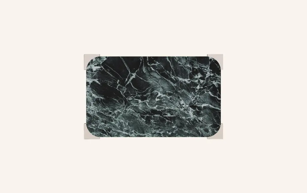 Form(la) Cubo Rectangle Coffee Table 74”l X 44”w X 14”h Verde Marble & Chrome