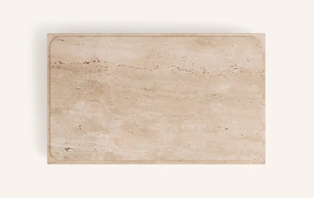 Form(la) Cubo Rectangle Plinth Coffee Table 48”l X 30”w X 13”h Travertino Crema