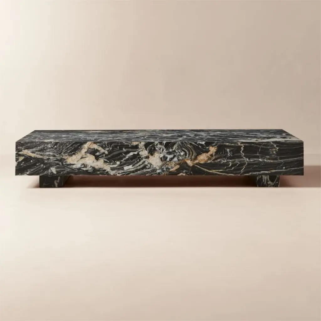 Form(la) Cubo Rectangle Plinth Coffee Table 60”l X 36”w X 13”h Nero Marble
