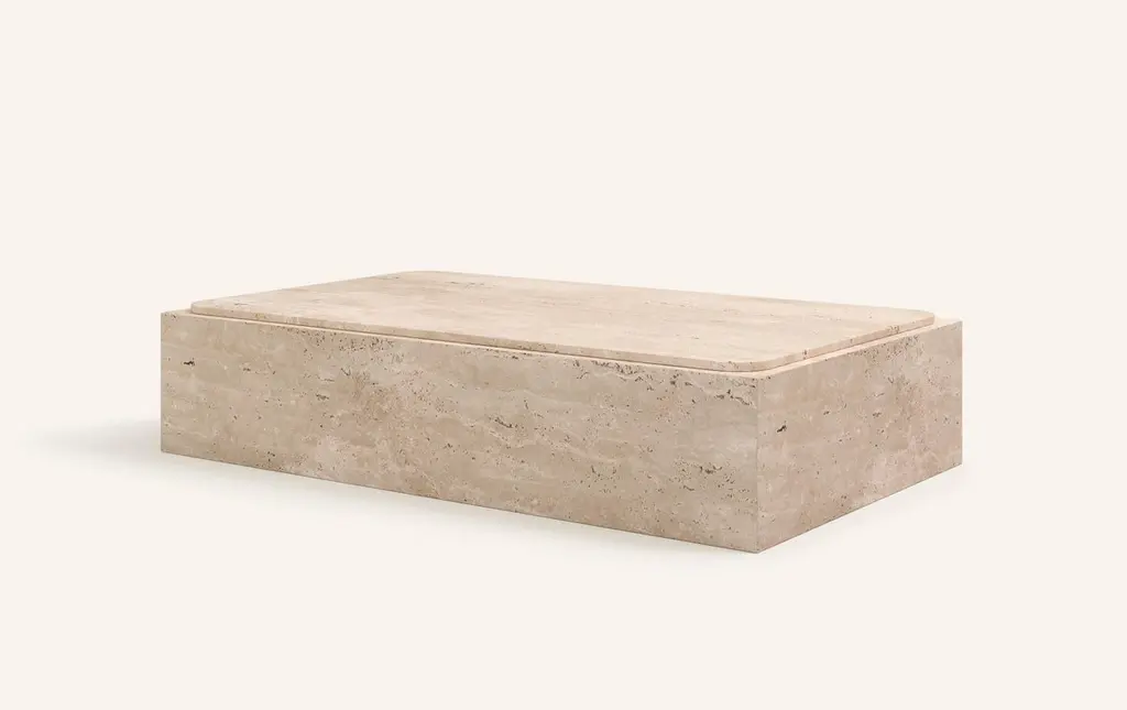 Form(la) Cubo Rectangle Plinth Coffee Table 60”l X 36”w X 13”h Travertino Crema