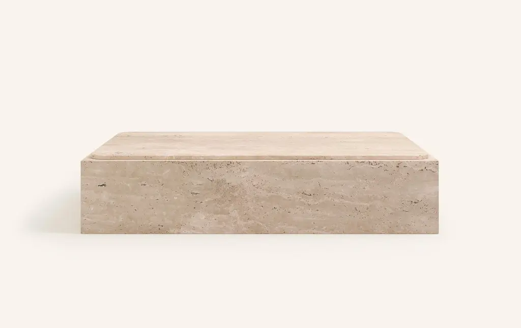 Form(la) Cubo Rectangle Plinth Coffee Table 72”l X 42”w X 13”h Travertino Crema
