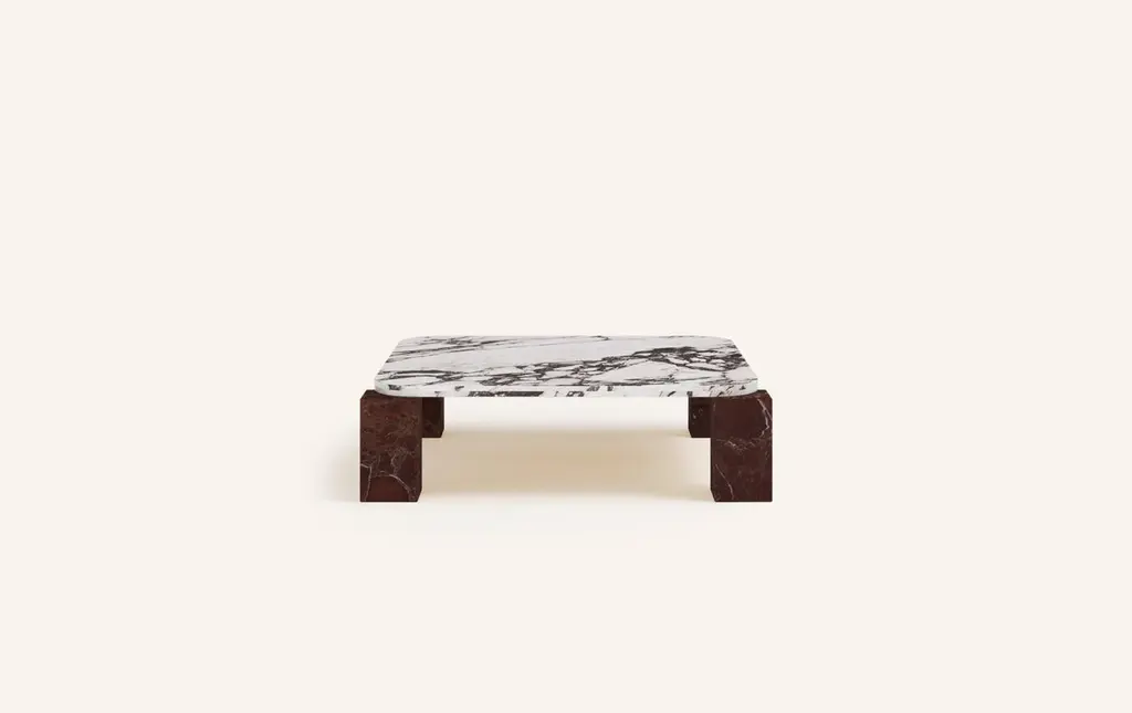 Form(la) Cubo Square Coffee Table 44”l X 44"w X 14”h Viola & Rosso Marble