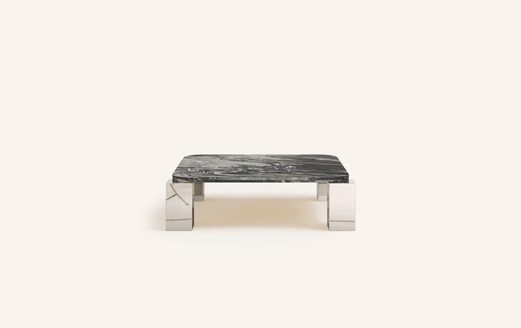 Form(la) Cubo Square Coffee Table 56”l X 56"w X 14”h Cipollino Marble & Chrome
