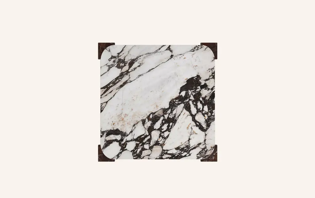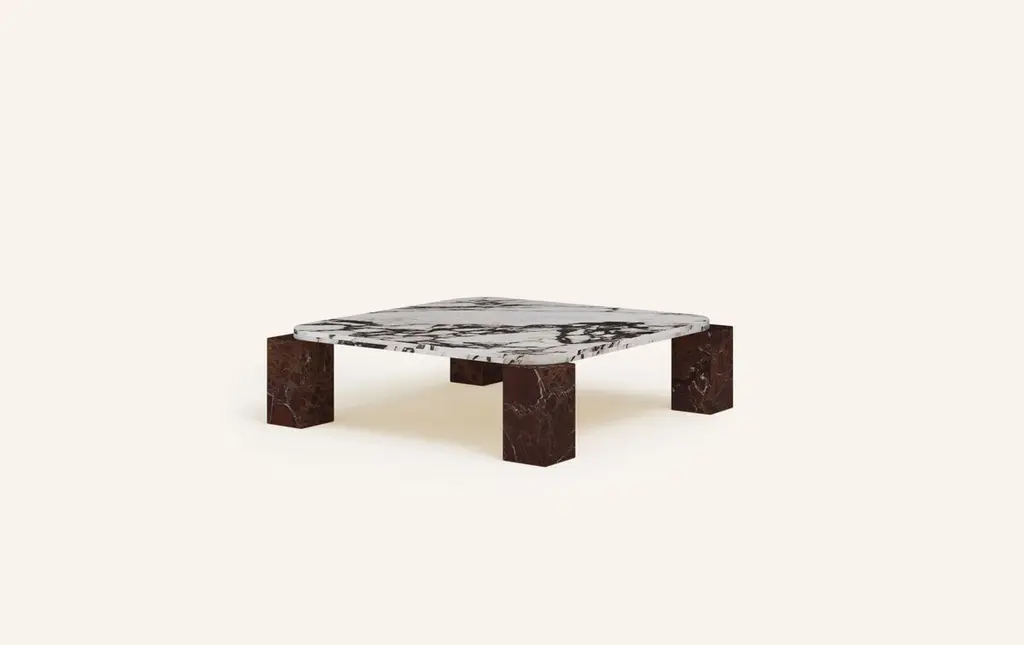 Form(la) Cubo Square Coffee Table 62”l X 62"w X 14”h Viola & Rosso Marble