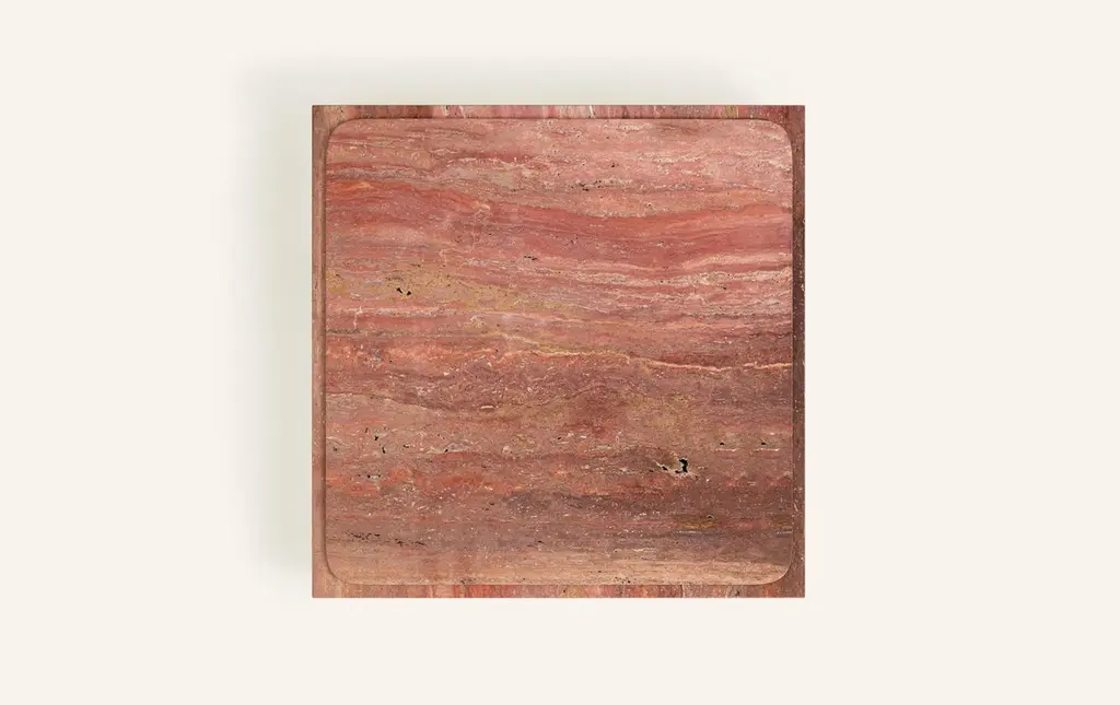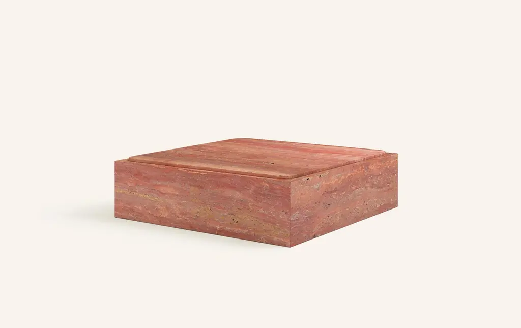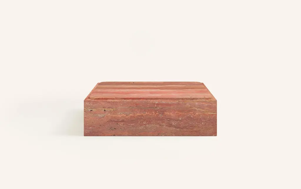 Form(la) Cubo Square Plinth Coffee Table 42”l X 42"w X 13”h Travertino Rosso Vc