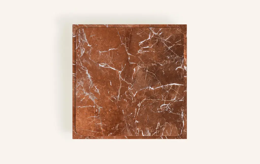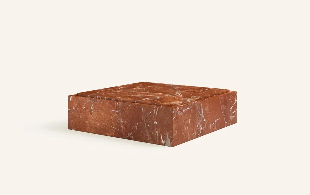 Form(la) Cubo Square Plinth Coffee Table 54”l X 54”w X 13”h Rojo Alicante Marble