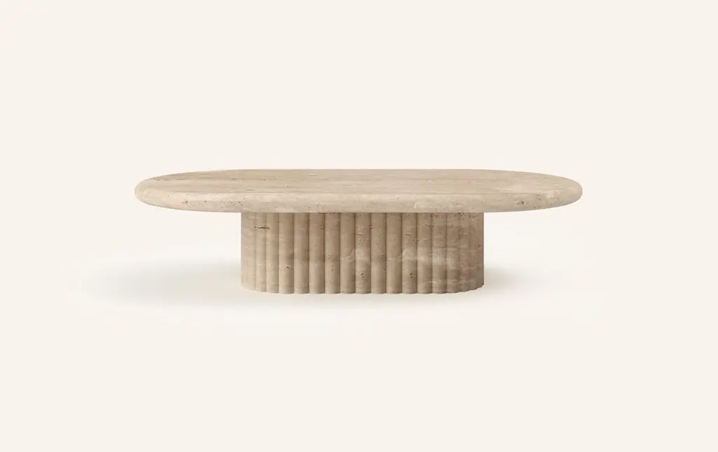 Form(la) Fluta Oval Coffee Table 48”l X 30”w X 14”h Travertino Crema Vc