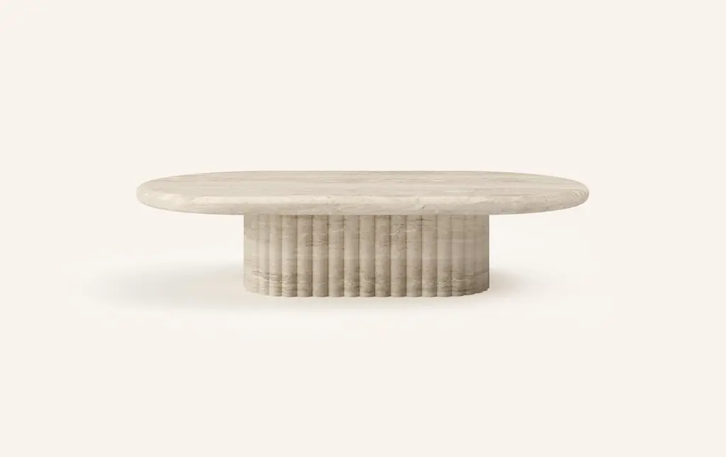 Form(la) Fluta Oval Coffee Table 48”l X 30”w X 14”h Travertino Navona Vc