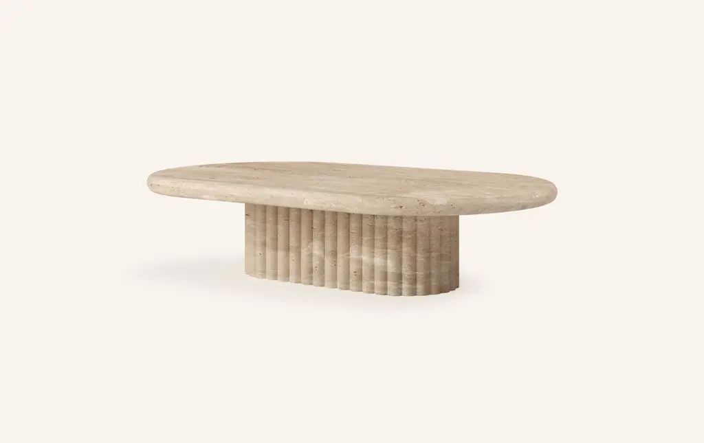 Form(la) Fluta Oval Coffee Table 60”l X 36”w X 14”h Travertino Crema Vc