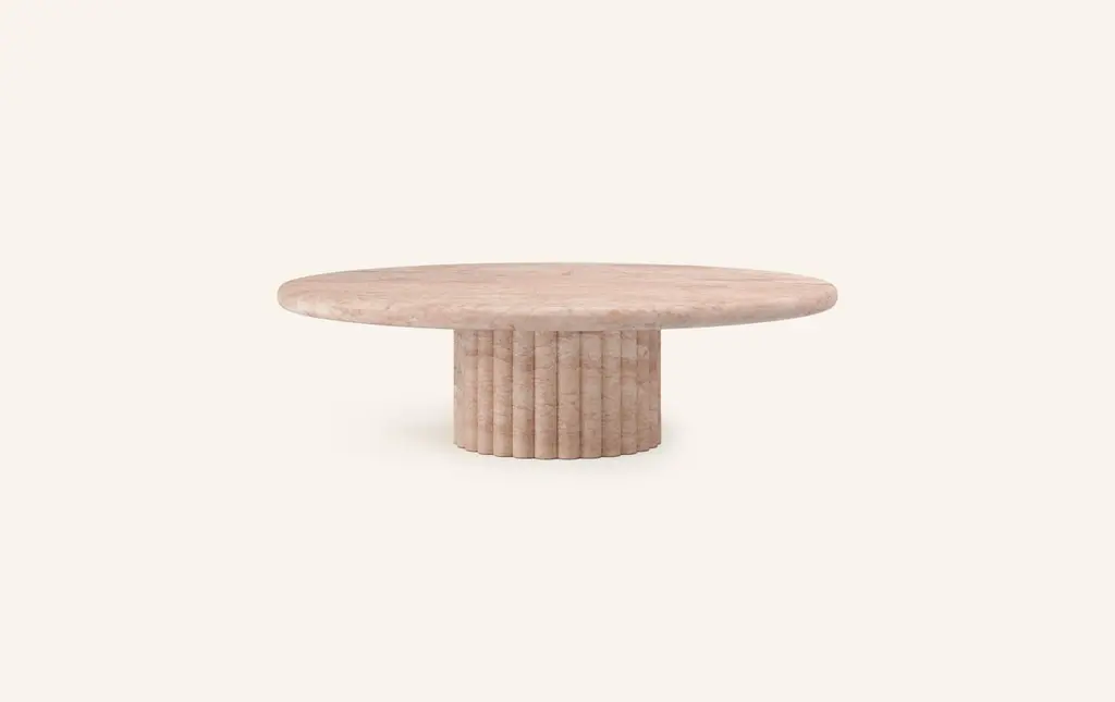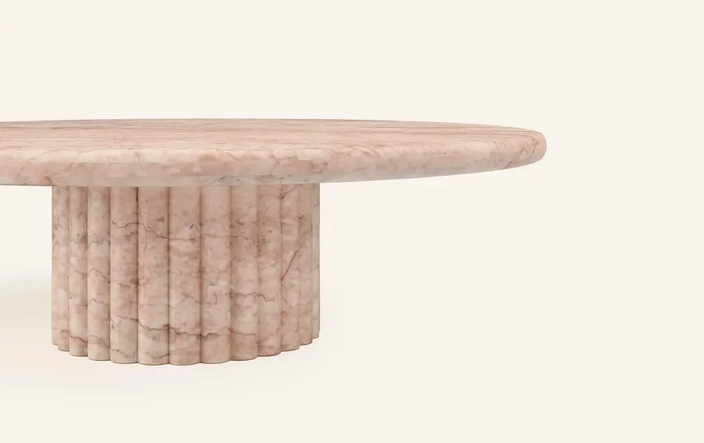 Form(la) Fluta Round Coffee Table 42”l X 42”w X 14”h Rosa Crema Marble