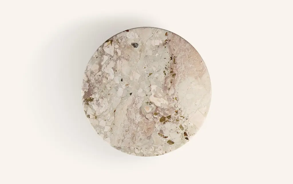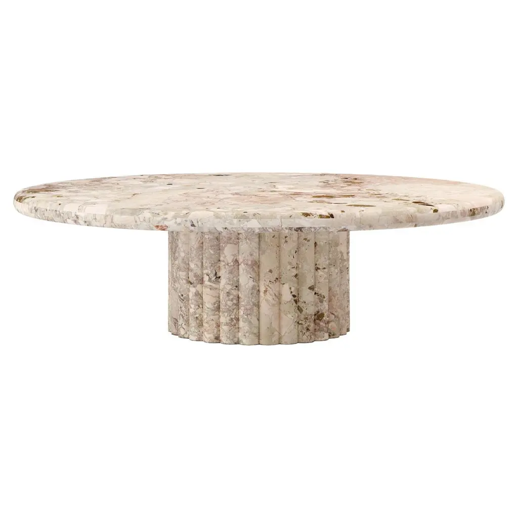 Form(la) Fluta Round Coffee Table 48”l X 48”w X 14”h Breccia Rosa Marble