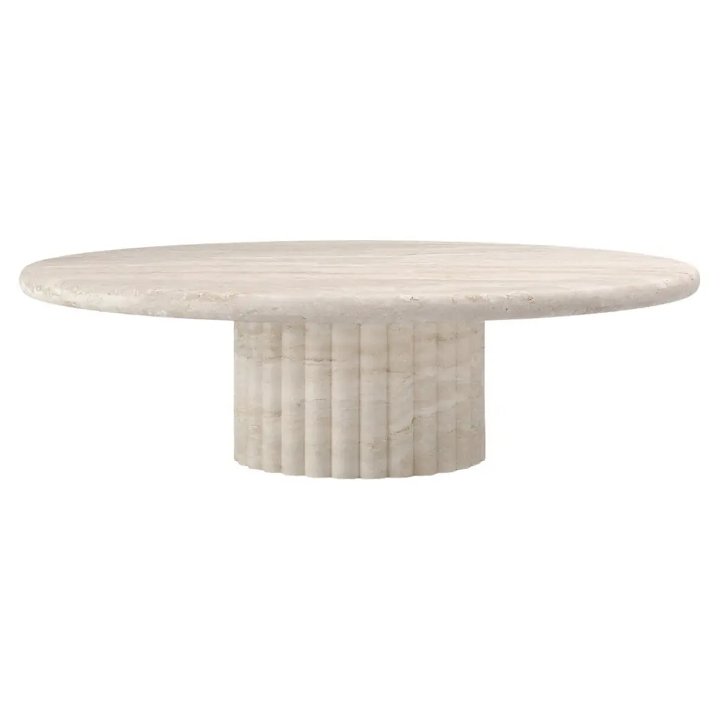 OUR MOST COVETED COLLECTION AND MODERN TWIST ON AN ANCIENT ROMAN CLASSIC. RECENTLY REFRESHED WITH A MORE PLAYFUL AND ROBUST PROFILE.DIMENSIONS:48”L x 48”W x 14”H: - 2.25" THICK TABLE TOP- 18"Ø FLUTED BASE WITH 2" FLUTES- 6.25"Ø CUTOUT IN TABLE TOP WITH CONSTRUCTION:TABLE TOP: - 3/4”x 3 SLABS WITH FULL BULLNOSE- HOLE IN TABLE TOP INTERLOCKS WITH BASE OF TABLEBASE:- HOLLOW CONSTRUCTION USING 3/4” STONE SLAB- FELT LINING TO BOTTOM OF BASE FOR FLOOR PROTECTION- STONE FINISH TO TOP OF BASEWEIGHT:48”L x 48”W x 14”H: - GROSS WEIGHT INCLUDING WOOD CRATE 650LBS