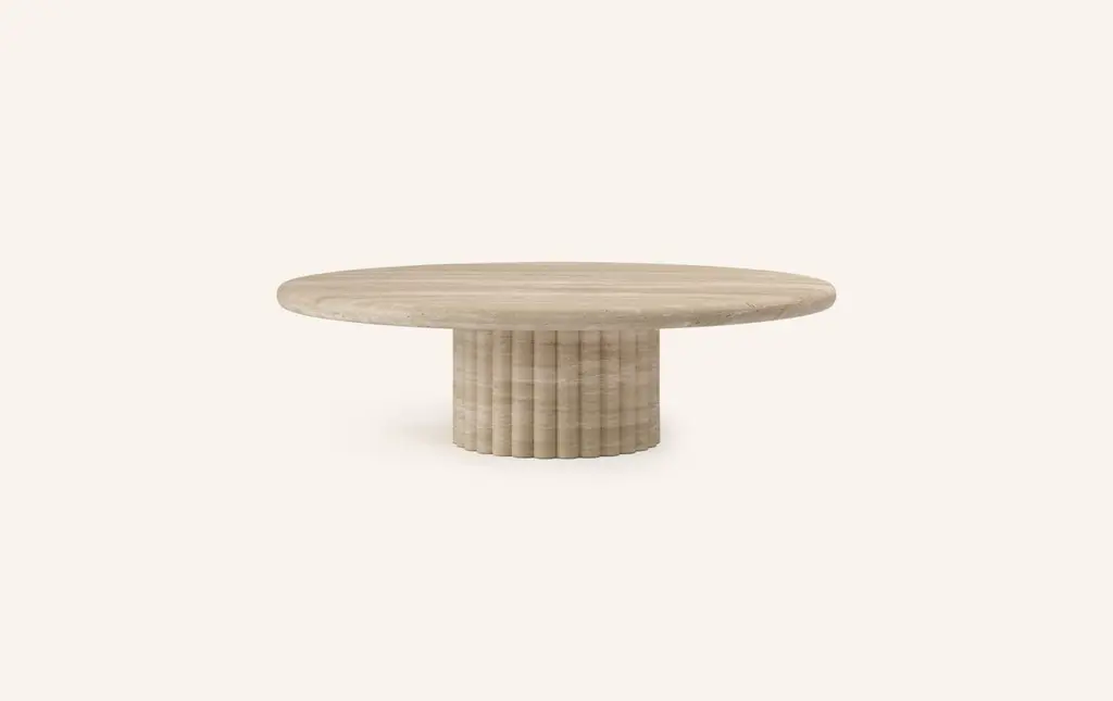 Form(la) Fluta Round Coffee Table 48”l X 48”w X 14”h Travertino Crema Vc