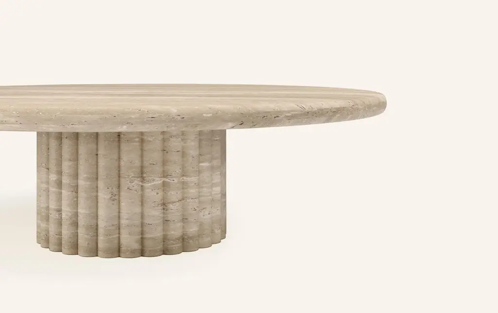 Form(la) Fluta Round Coffee Table 54”l X 54”w X 14”h Travertino Crema Vc
