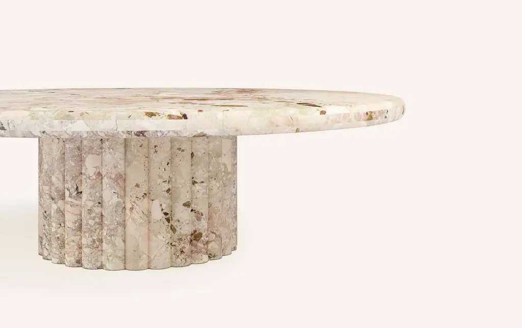 Form(la) Fluta Round Coffee Table 60”l X 60”w X 14”h Breccia Rosa Marble