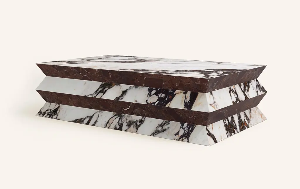 A BOLD AND EXPRESSIVE FORM WHERE GEOMETRY AND HARMONY COLLIDE. ITALIAN FOR WRINKLE, 'GRINZA'S ZIG-ZAG STRUCTURE' IS BOTH TIMELESS AND ELEGANT. DIMENSIONS:60”L x 36”W x 16”H: - WRINKLED BASE WITH 4" FOLDSCONSTRUCTION:- 3/4" THICK TOP & BASE- HOLLOW CONSTRUCTION USING 3/4” STONE SLAB- FELT LINING TO BOTTOM OF BASE FOR FLOOR PROTECTIONWEIGHT:60”L x 36”W x 16”H: - GROSS WEIGHT INCLUDING WOOD CRATE 637LBS