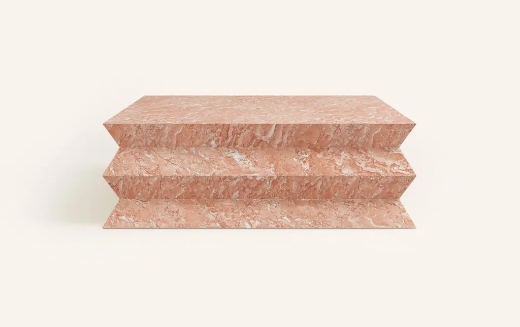 A BOLD AND EXPRESSIVE FORM WHERE GEOMETRY AND HARMONY COLLIDE. ITALIAN FOR WRINKLE, 'GRINZA'S ZIG-ZAG STRUCTURE' IS BOTH TIMELESS AND ELEGANT. DIMENSIONS:42”L x 42”W x 16”H: - WRINKLED BASE WITH 4" FOLDSCONSTRUCTION:- 3/4" THICK TOP & BASE- HOLLOW CONSTRUCTION USING 3/4” STONE SLAB- FELT LINING TO BOTTOM OF BASE FOR FLOOR PROTECTIONWEIGHT:42”L x 42”W x 16”H: - GROSS WEIGHT INCLUDING WOOD CRATE 533LBS