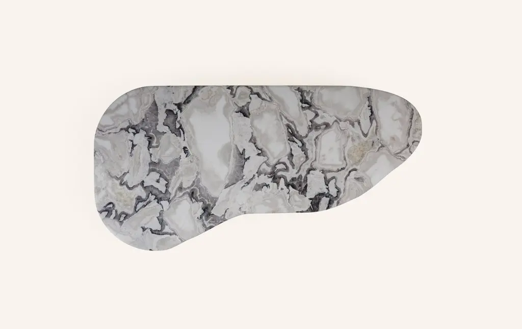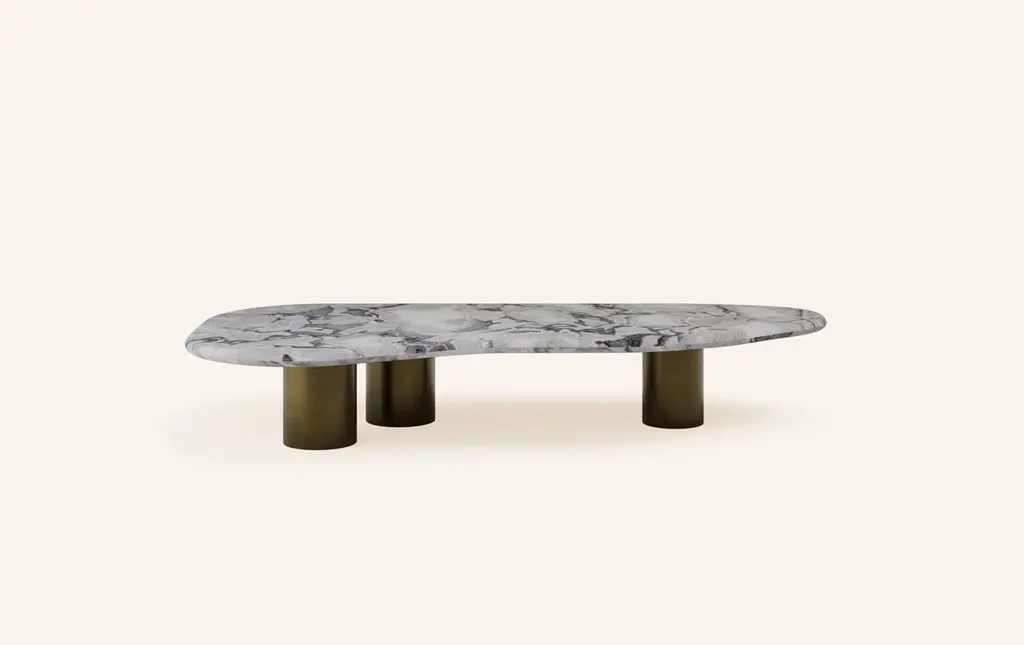 Form(la) Lago Freeform Coffee Table 60”l X 30”w X 12”h Oyster Marble & Bronze