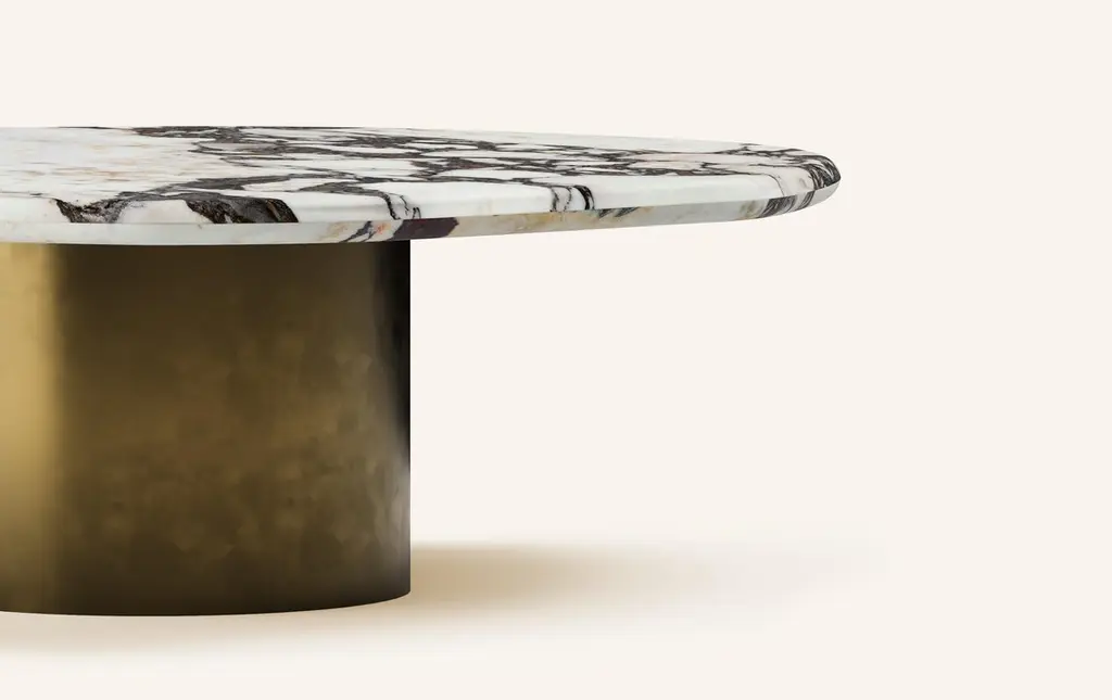 Form(la) Lago Round Coffee Table 36”l X 36”w X 14”h Viola Marble & Bronze