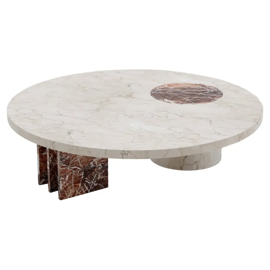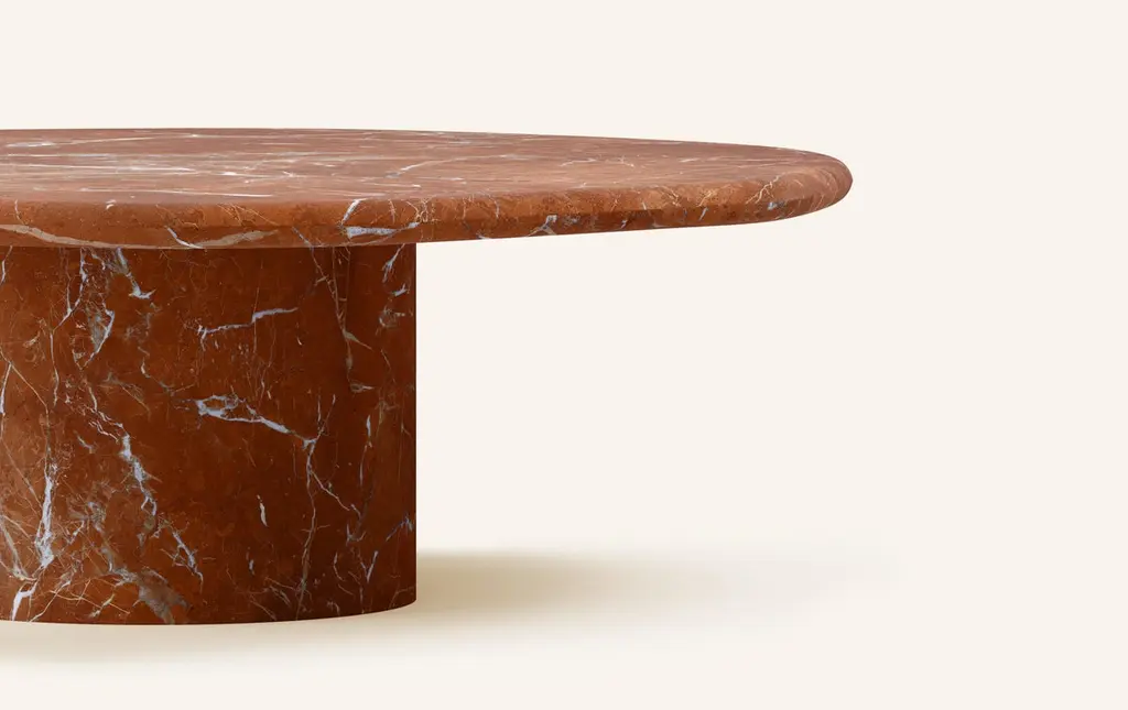 Form(la) Lago Round Coffee Table 54”l X 54”w X 14”h Rojo Alicante Marble