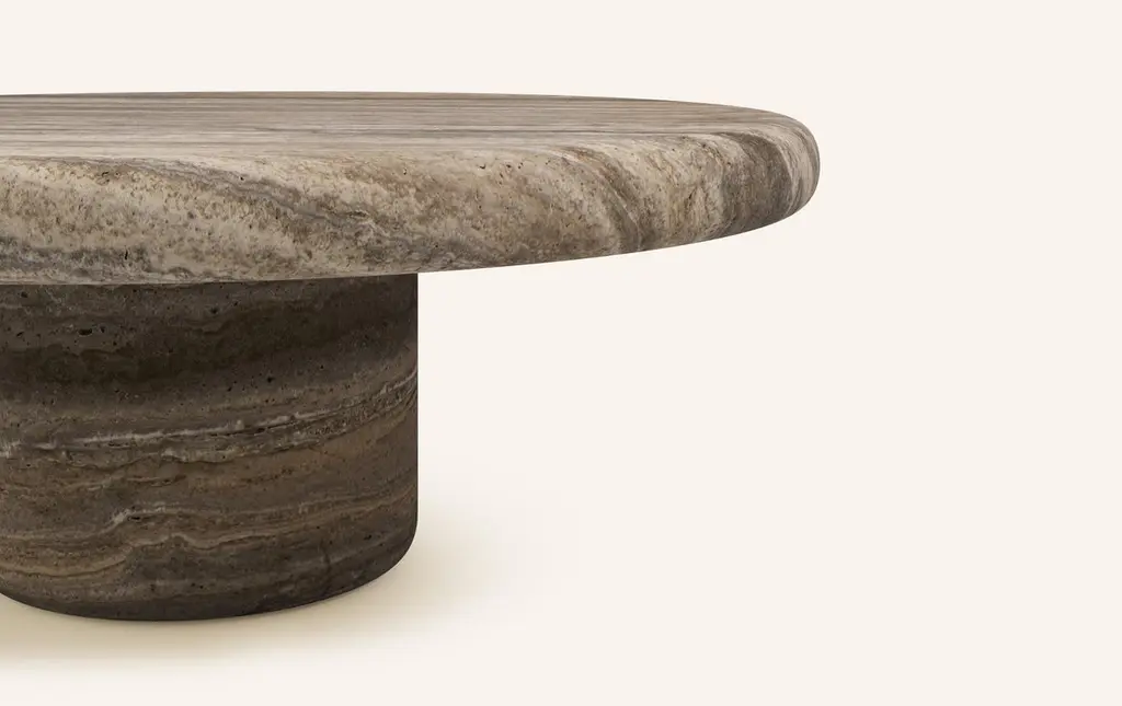 Form(la) Luna Round Coffee Table 48”l X 48”w X 15”h Travertino Argento Vc