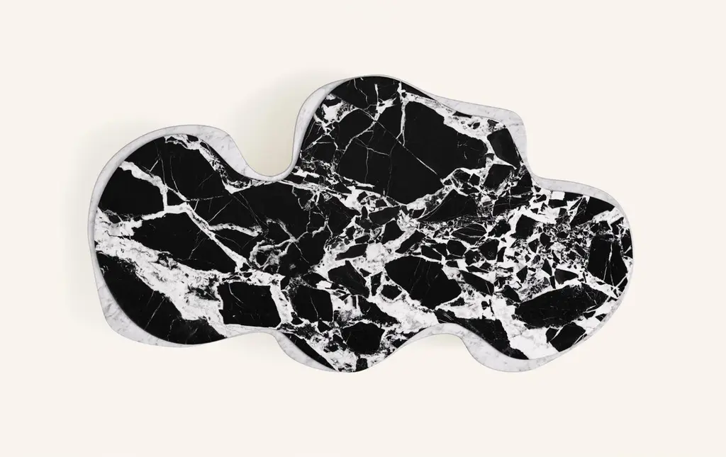 Form(la) Onda Freeform Coffee Table 72”l X 39”w X 14”h Nero & Bianco Marble
