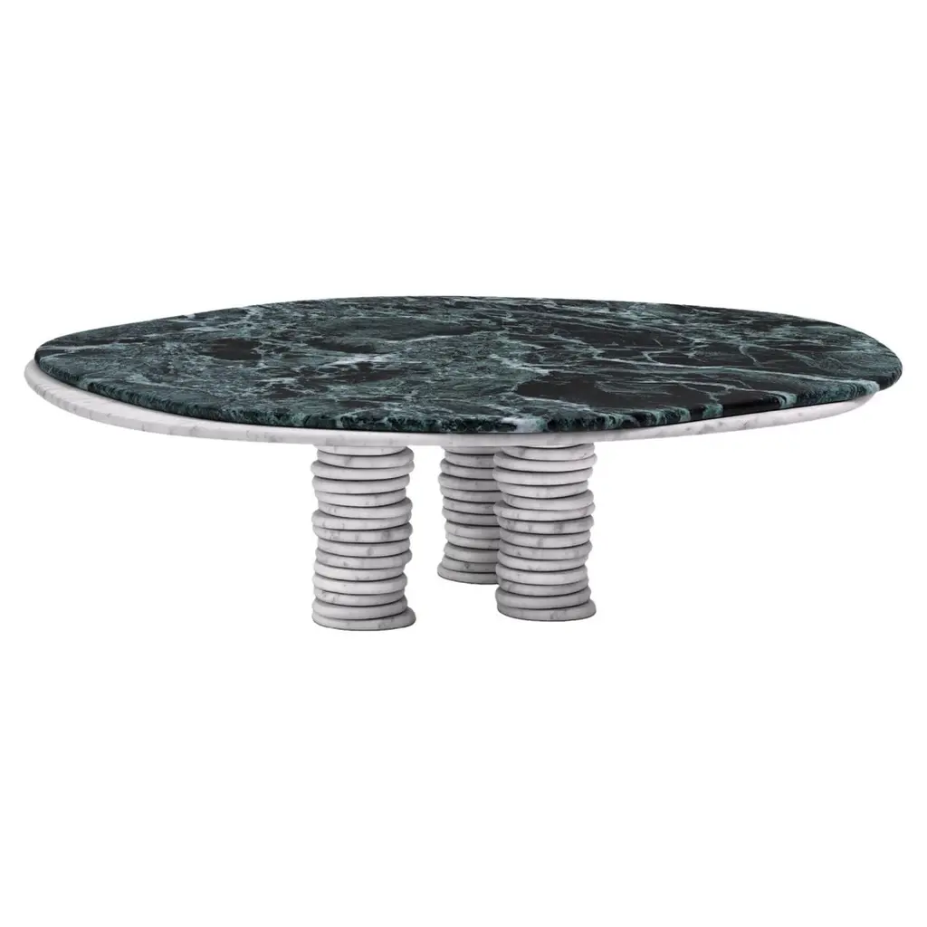 Form(la) Onda Round Coffee Table 60"l X 60"w X 14"h Verde Alpi & Carrara Marble