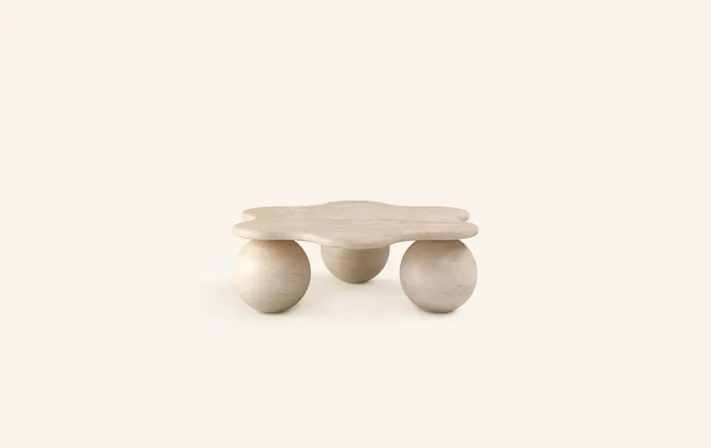 AN ODE TO MODERNIST DESIGN. TRANSLATING TO ‘BALL’ IN ITALIAN IS THE GEOMETRY OF PALLA HAS BEEN METICULOUSLY CRAFTED WITH EACH WAVE RADIUS ALIGNING PERFECTLY WITH THE DIAMETER OF EACH BALL BELOW.DIMENSIONS:42”L x 38”W x 13”H: - 1.5” THICK TABLE TOP- 3 x 12"Ø SOLID BASE WITH FLAT TOP & BOTTOM- 3 x 1.5”Ø CUTOUT IN TABLE TOP WITH 1.25”Ø INTERLOCK ON BASECONSTRUCTION:TABLE TOP: - 3/4”x 2 LAMINATED SLABS WITH FULL BULLNOSE- HOLE IN TABLE TOP INTERLOCKS WITH BASE OF TABLEBASE:- CARVED FROM A SINGLE SOLID BLOCK OF STONE- FELT LINING TO BOTTOM OF BASE FOR FLOOR PROTECTIONWEIGHT:42”L x 38”W x 13”H: - GROSS WEIGHT INCLUDING WOOD CRATE 652LBS