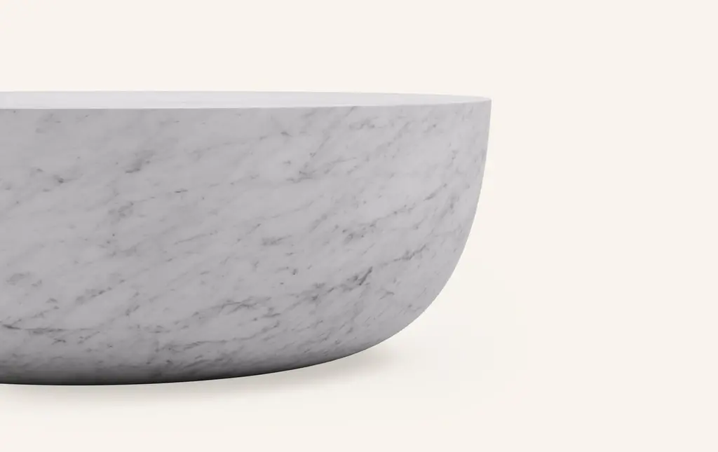 Form(la) Sfera Round Coffee Table 36”l X 36”w X 16”h Carrara Bianco Marble