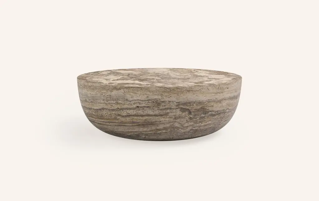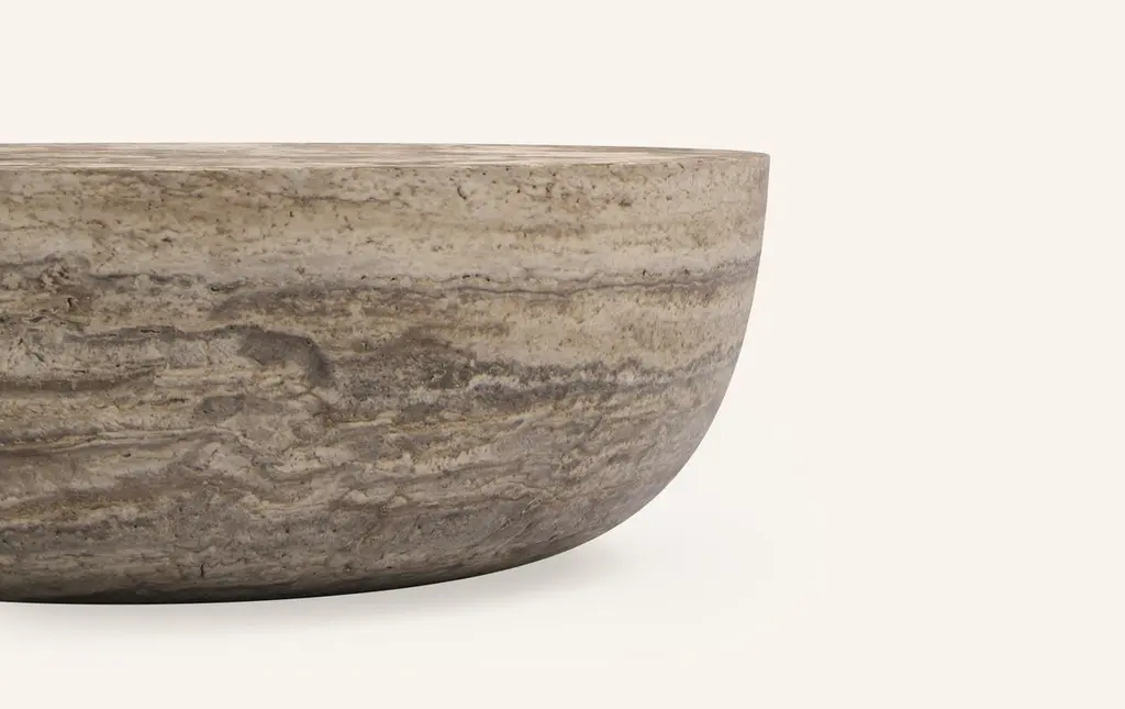Form(la) Sfera Round Coffee Table 54”l X 54”w X 16”h Travertino Argento Vc