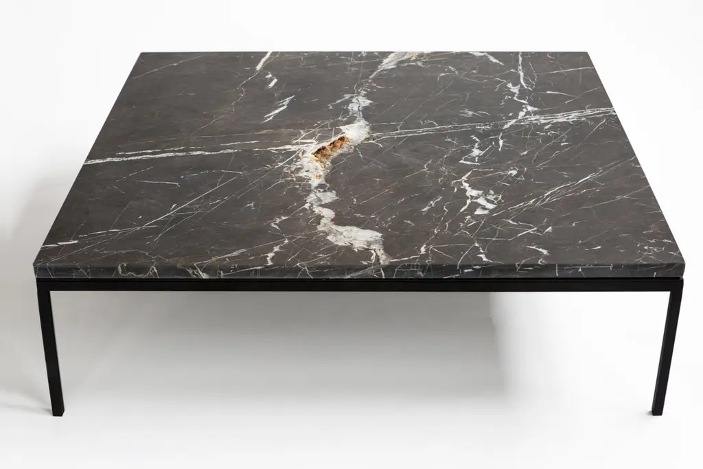 Found I coffee table No.2 by A SpaceDimensions: D120 x W120 x H38 cmMaterials: marble, steel.FOUND I collection centers around the power of the medium to dictate the final form that art objects take. Each piece of marble was hand-picked at a small family-owned quarry in the South of Turkey with an intention to work around its imperfections. This collection exposes the rough texture of natural stone, celebrating its beauty and reminding of the mountains that the stone came from.A S P A C E is a New York-based design & art studio, co-founded by Anna Aristova and Roza Gazarian in 2016. Their collaborative pieces are an attempt to bring in the timeless beauty of nature to contemporary lifestyle, whether it’s functional furniture or a decorative object. The essence of each of their creations is a sense of a vast open space, where ideas, thoughts or feelings spontaneously arise, evolve through experimentation and ultimately manifest as a functional art piece. Each object is a one-of-a-kind creation that beckons to look beyond mere form and material, and to connect to the primordial nature of the elements. Their work is a constant balance of opposites -- improvisation and thoughtful planning, intuition and knowledge, organic and geometric, timelessness and impermanence.