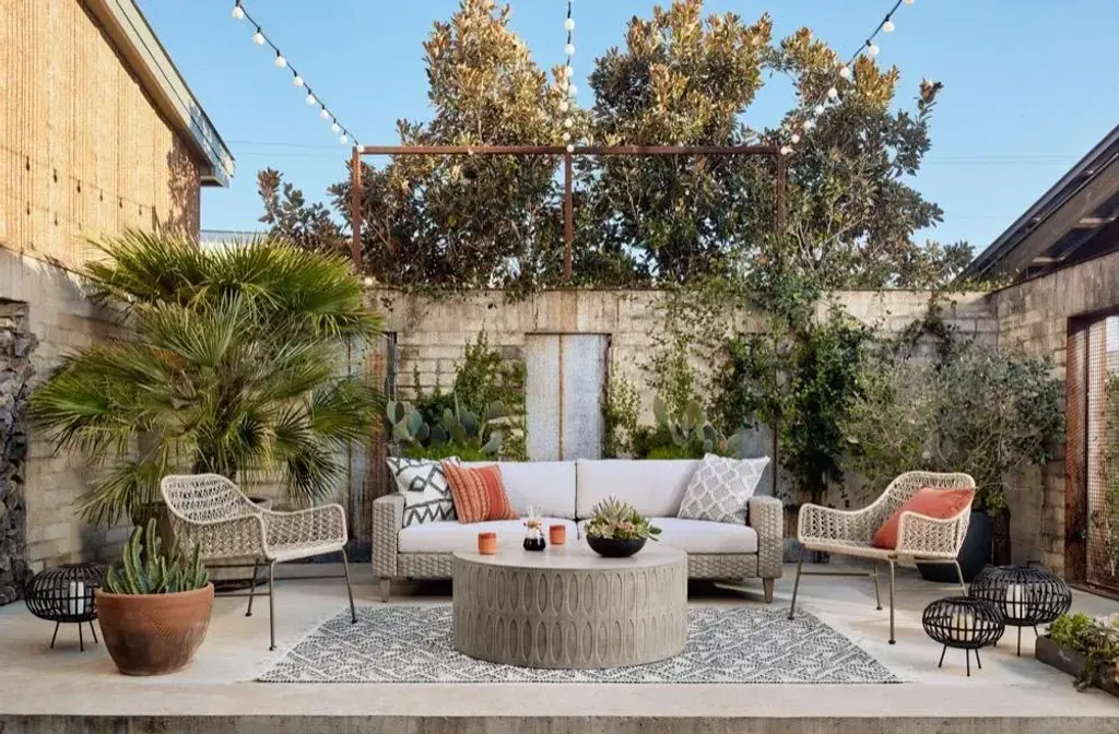 Concrete adopts alluring shapes as modern geometrics play with nature's petal form. A hollowed drum of dark grey concrete is intricately etched for artistic intrigue. Safe indoors or out. Cover or store indoors during inclement weather or when not in use. Assembly Required? No