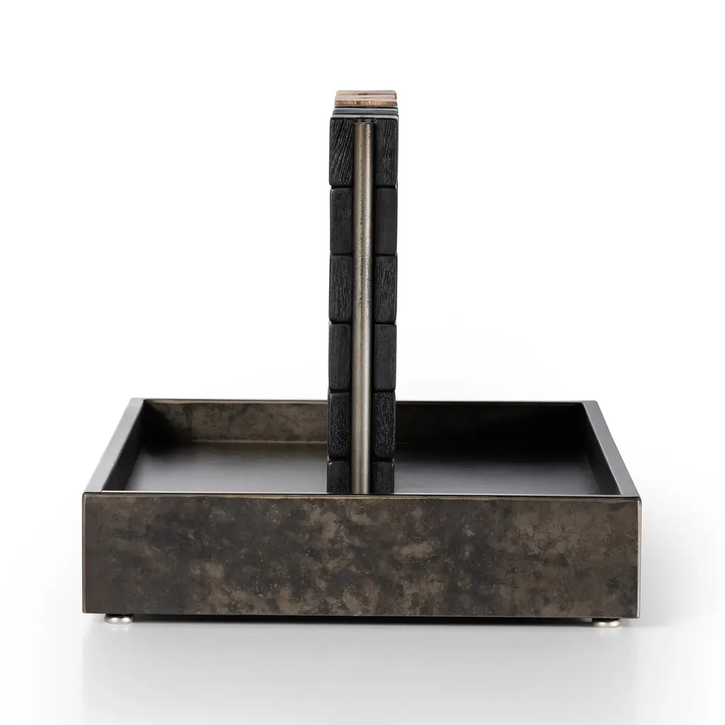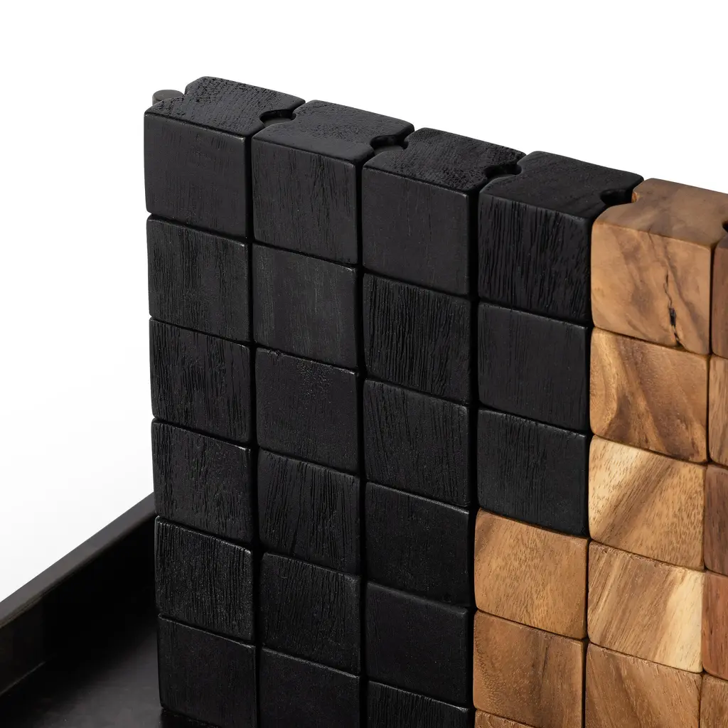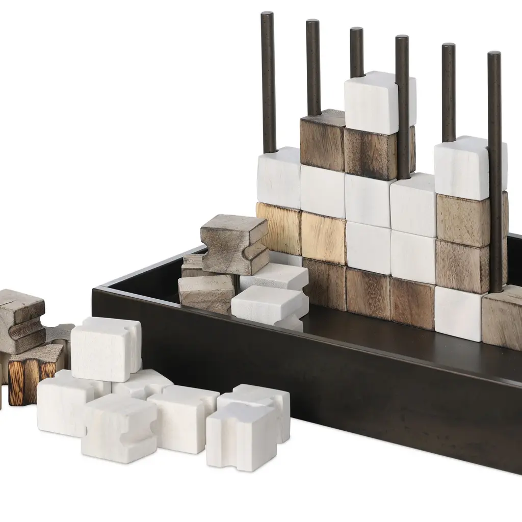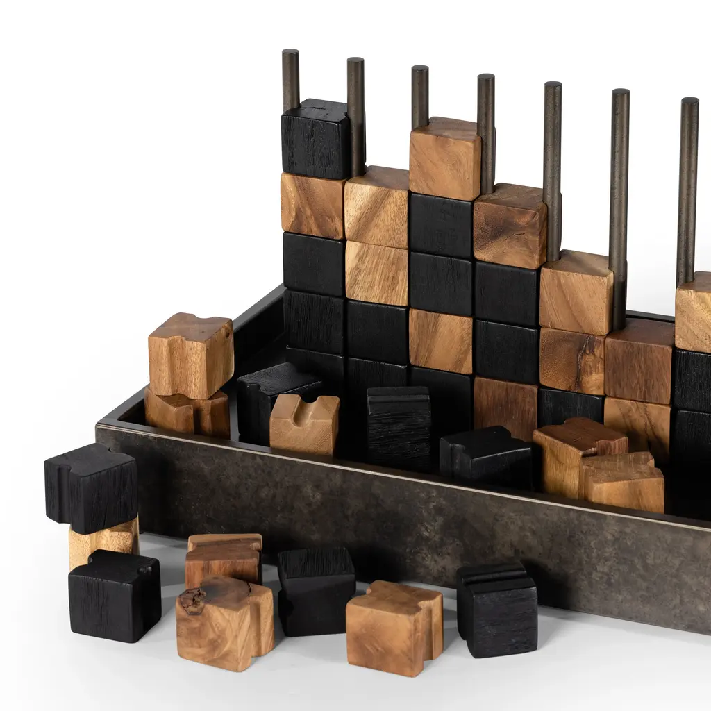 This unique Four in a Row game from Four Hands, crafted from solid recycled wood and iron in a rustic finish, adds a touch of elegance to any home. The decorative yet functional design of this eye-catching game is highlighted by its geometric lines and clean shape, making it a perfect addition to any shelf or coffee table. Highlights