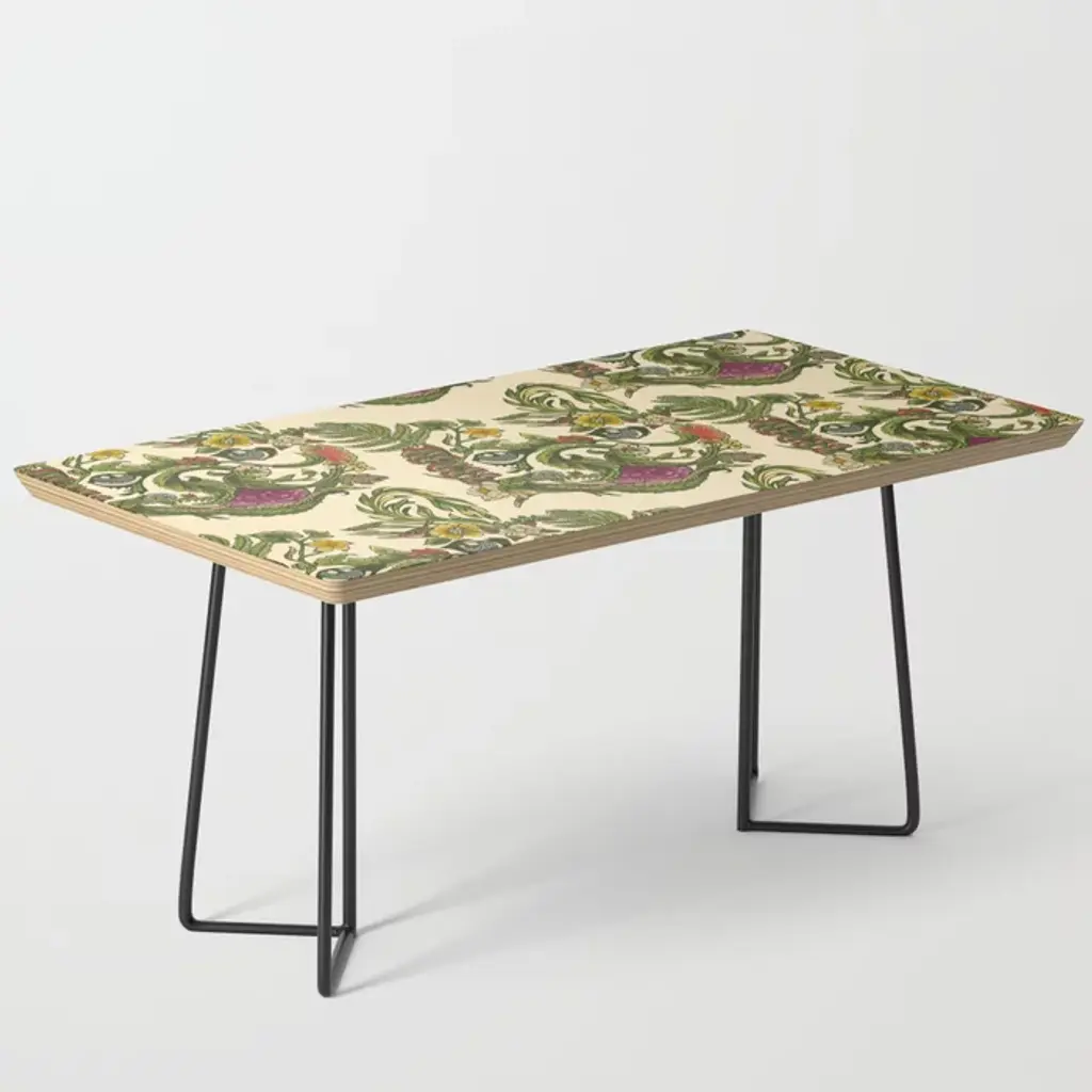 35.75" x 17.75" x 17" (H)Baltic birch table top with beveled edgeHigh quality print with satin finishSteel legs available in black or goldAssembly requiredEvery order is made just for youSHIPPING: Items are made to order and typically ship within 3-4 business days. Click here for more information about delivery options.Furniture sales are final. Click here for more information on returns.