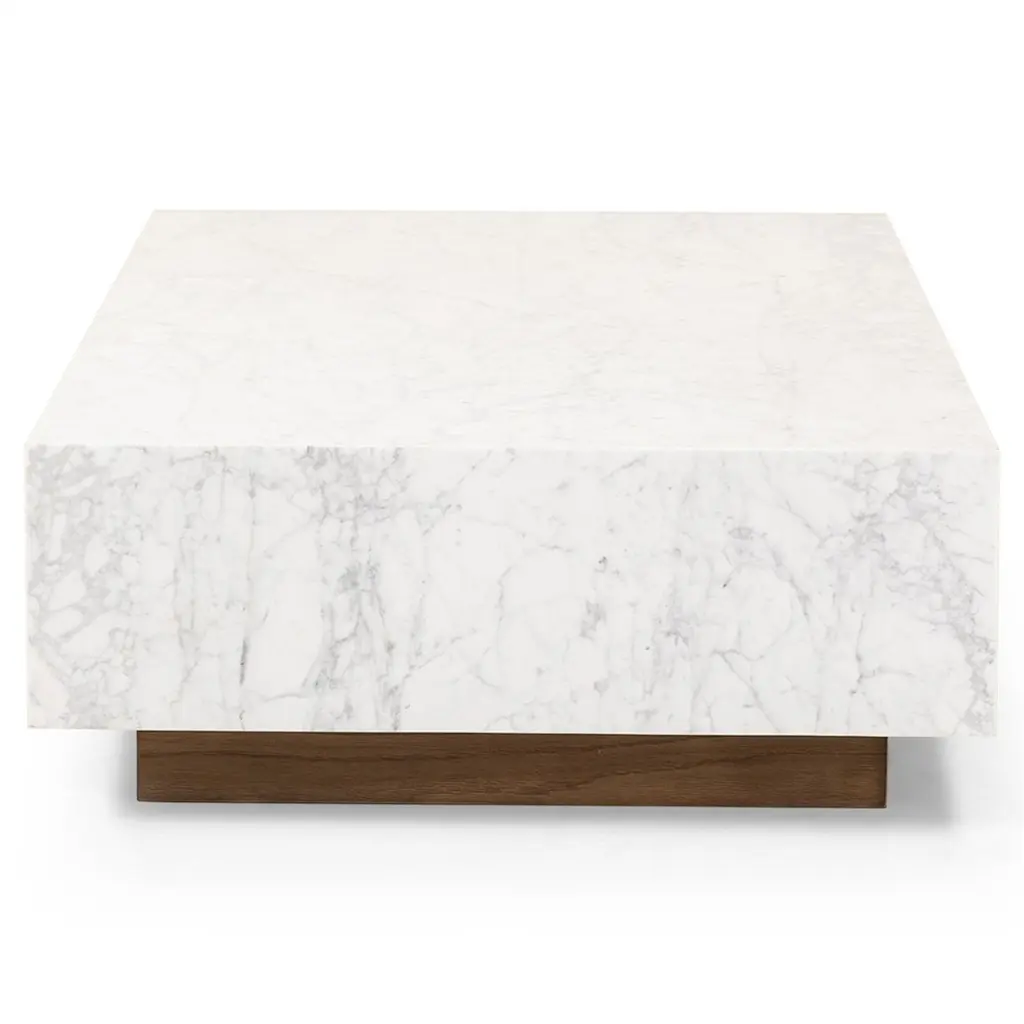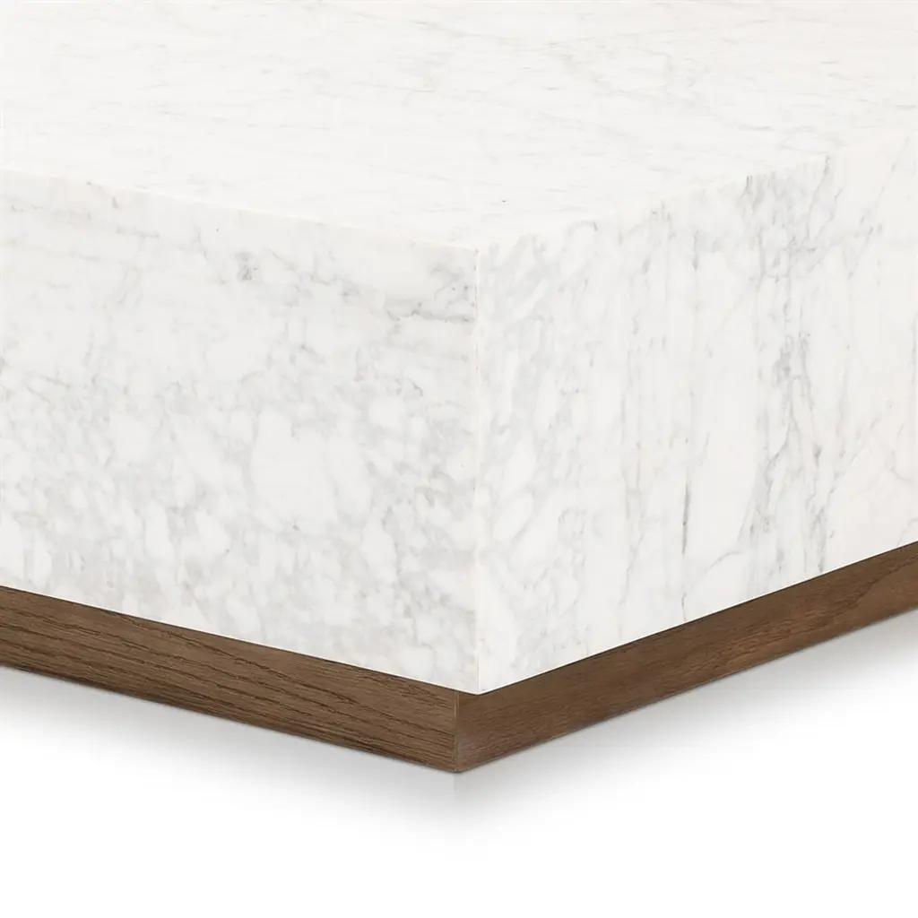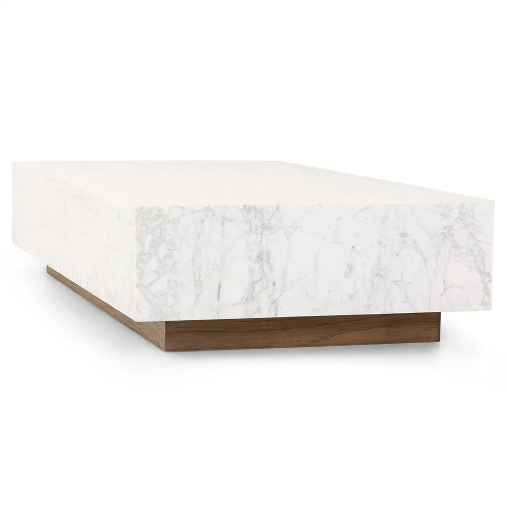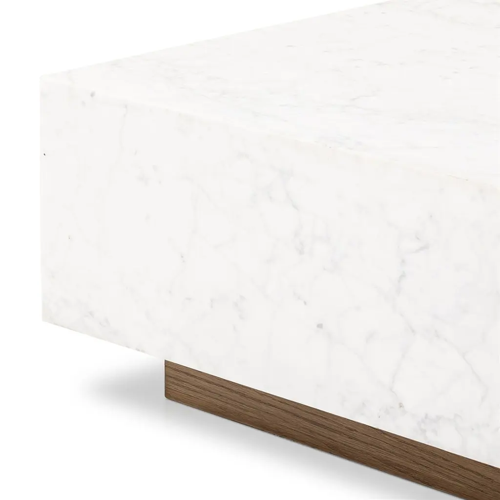 Frane Modern Classic White Marble Brown Oak Rectangular Coffee Table