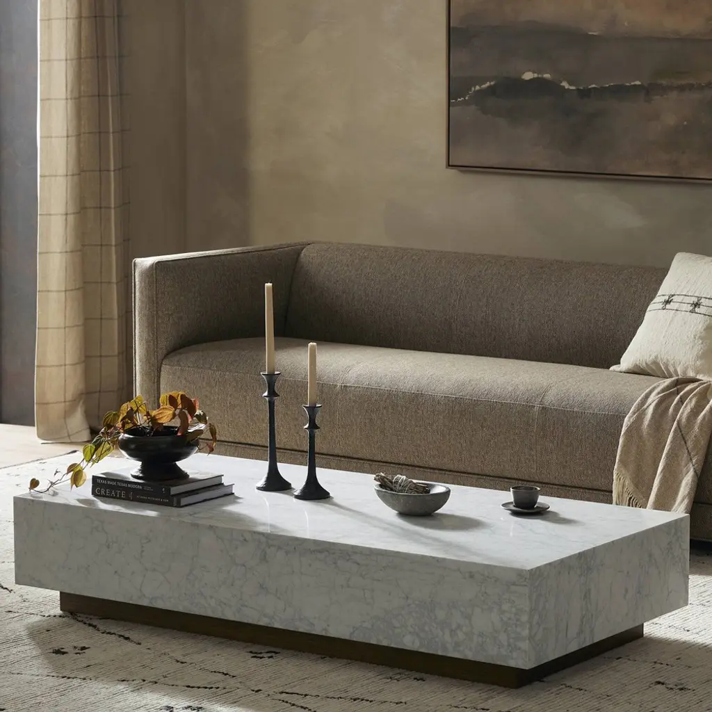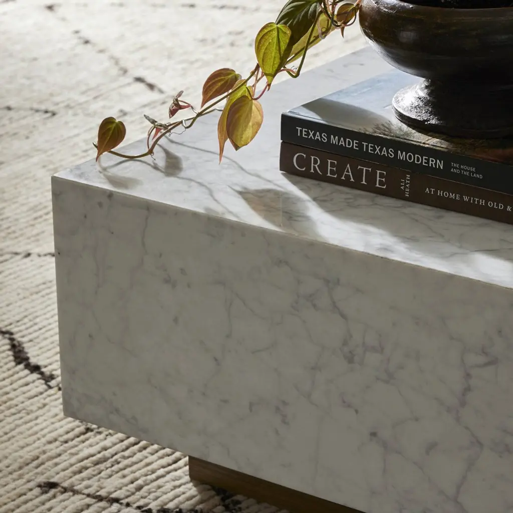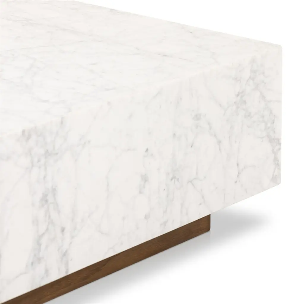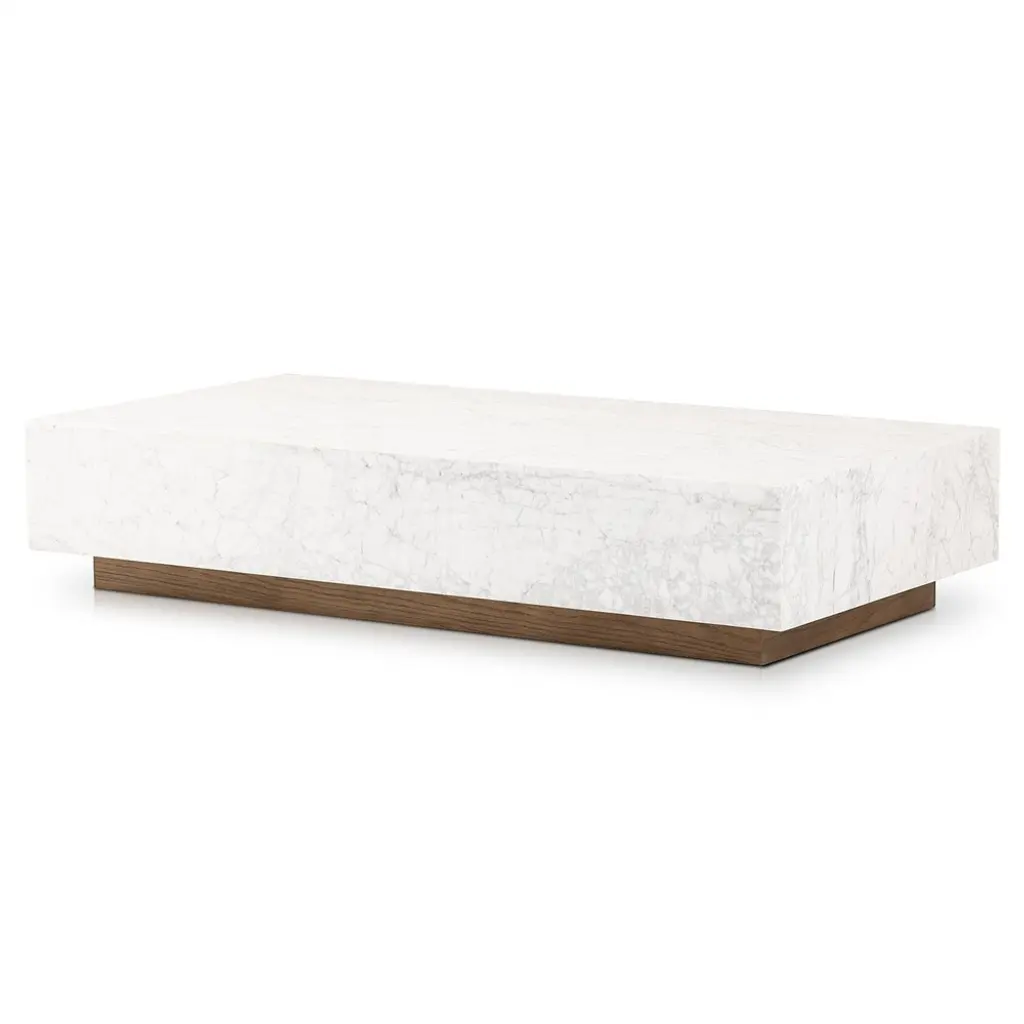 Frane Modern Classic White Marble Brown Oak Rectangular Coffee Table