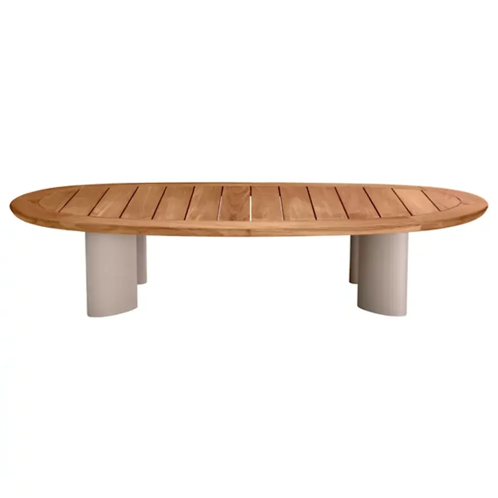 Transform your outdoor lounge spaces with the Free Form Outdoor Coffee Table by Eichholtz. This eco-friendly piece features a Grade A teak wood top crafted from sustainably managed forests, aluminum legs, and a sleek sand-colored powder coat. The free-form design combines rustic charm with contemporary simplicity, creating a focal point for any gathering space. Each table is artisan handcrafted, matching natural materials with modern style, while the teak wood acquires a silver patina over time.
